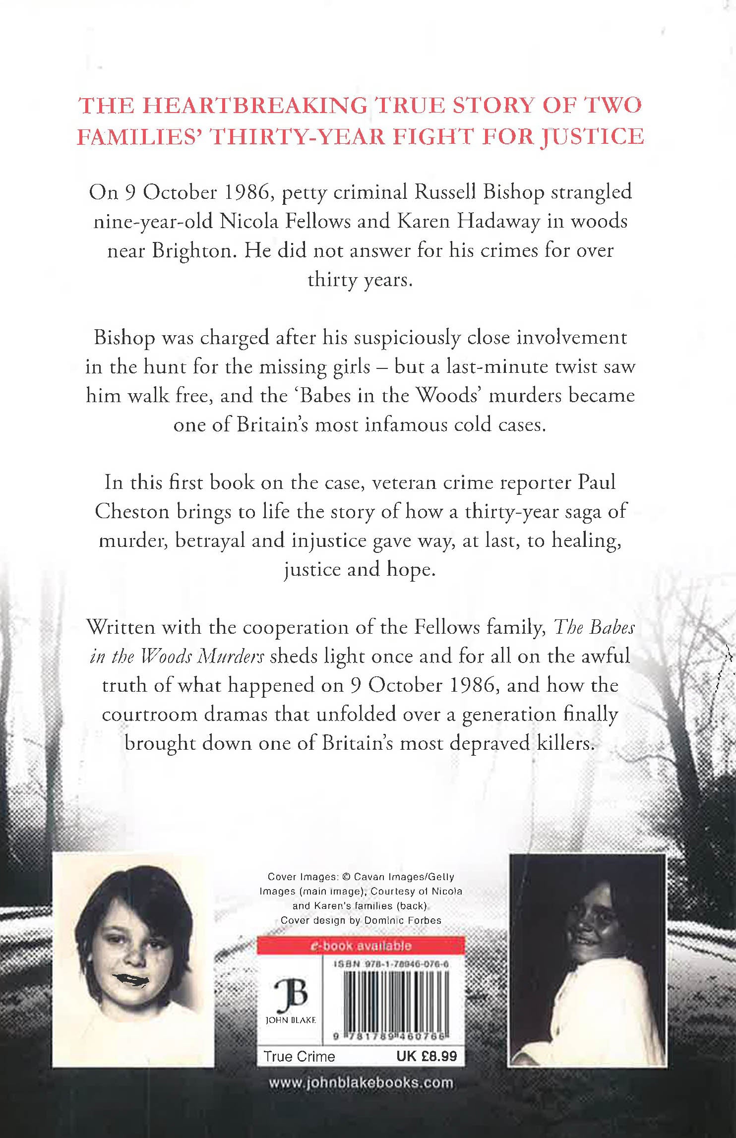 The heartbreaking true story of two families' thirty-year fight for justice for their murdered daughters On 9 October 1986, Russell Bishop sexually assaulted and strangled nine-year-old Nicola Fellows and Karen Hadaway, in woods near Brighton. He did not answer for his crimes for over thirty years. Bishop - a petty criminal known to both girls' families - was charged after his suspiciously close involvement in the search for the bodies. But a last-minute change of testimony from his then-girlfriend allowed him to go free, and the Babes in the Woods murders became one of Britain's most infamous cold cases. In this first book on the case, veteran crime reporter Paul Cheston brings to life this thirty-year saga of murder, betrayal and injustice - before three decades of hurt led, at last, to healing, justice and hope for the parents of two murdered girls. Written with the approval and cooperation of the Fellows family, The Babes in the Woods Murders sheds light once and for all on the awful truth behind what happened on 9 October 1986, and how the courtroom dramas that unfolded over a generation finally brought down one of Britain's most depraved killers.