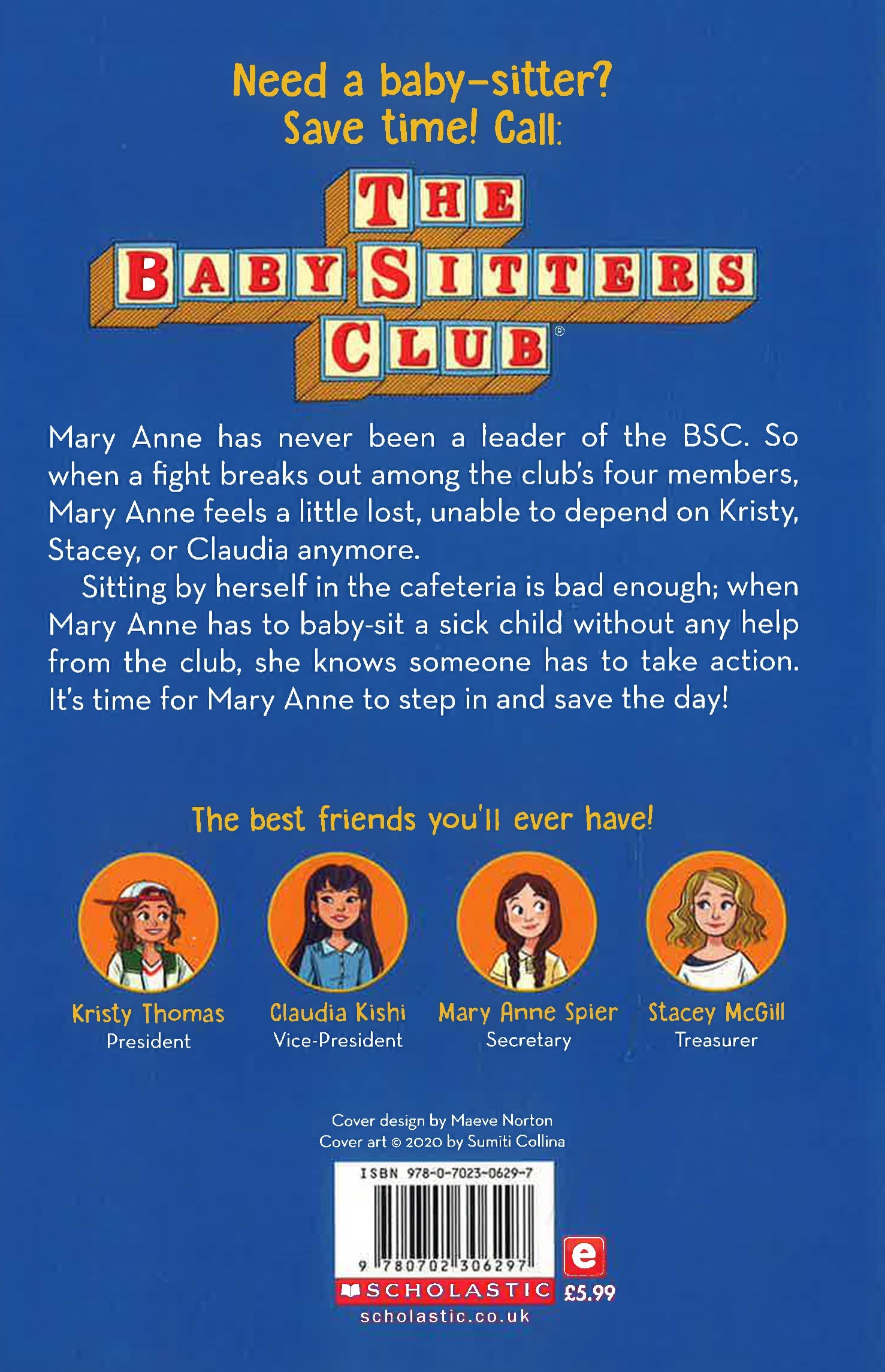 Sitting by herself in the cafeteria is bad enough; when Mary Anne has to baby sit a sick child without any help from the club, she knows someone has to take action. It's time for Mary Anne to step in and save the day!