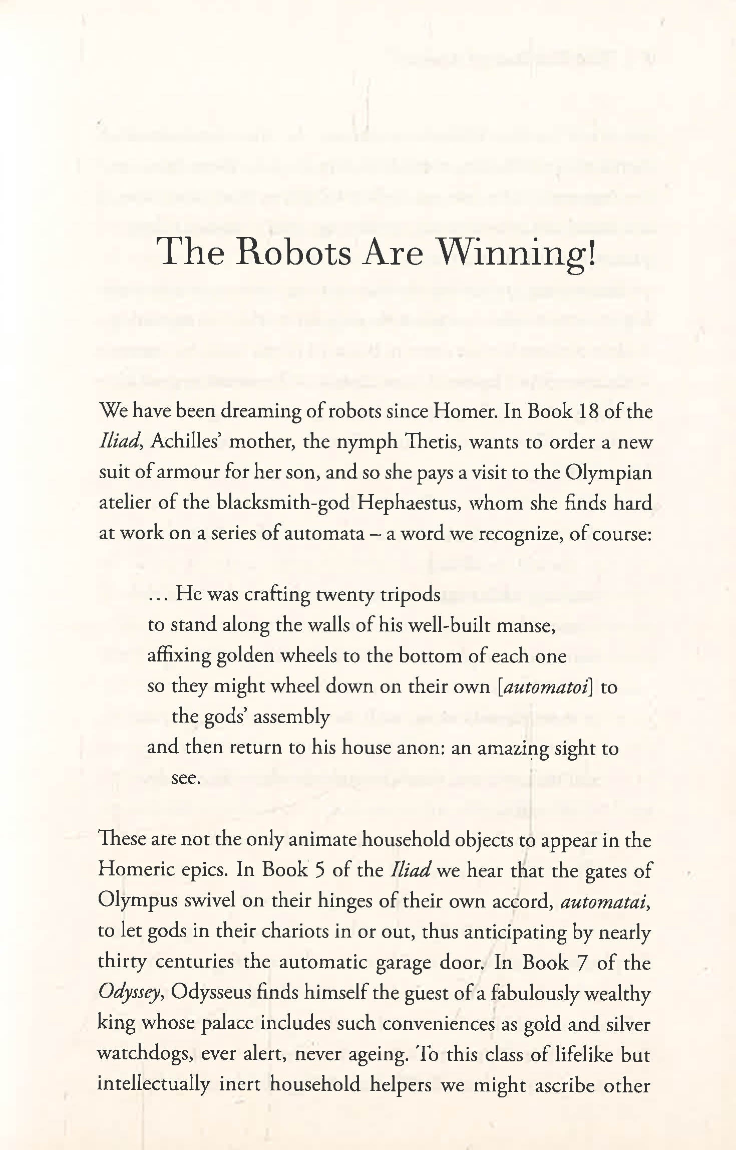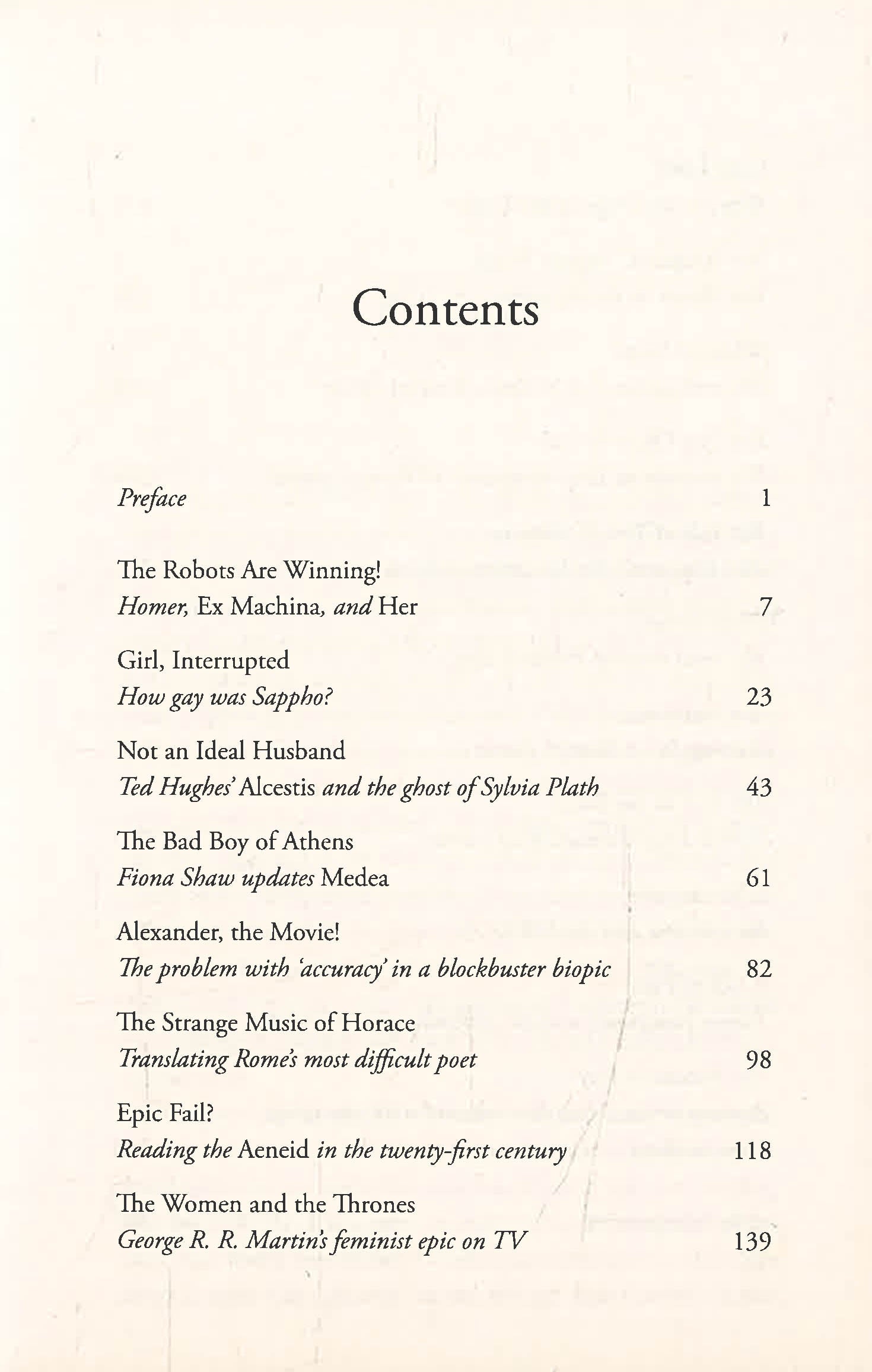 There is much to surprise here. Mendelsohn invokes the automatons featured in Homer’s epics to help explain the AI films Ex Machina and Her, and perceives how Ted Hughes sought redemption by translating a play of Euripides (the ‘bad boy of Athens’) about a wayward husband whose wife returns from the dead. There are essays on Sappho’s sexuality and the feminism of Game of Thrones; on how Virgil’s Aeneid prefigures post-World War II history and why we are still obsessed with the Titanic; on Patrick Leigh Fermor’s final journey, Karl Ove Knausgaard’s autofiction and the plays of Tom Stoppard, Tennessee Williams, and Noël Coward. The collection ends with a poignant account of the author’s boyhood correspondence with the historical novelist Mary Renault, which inspired his ambition to become a writer.