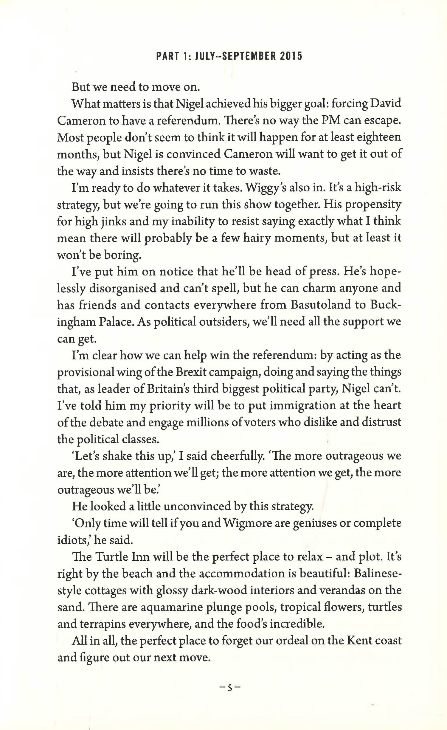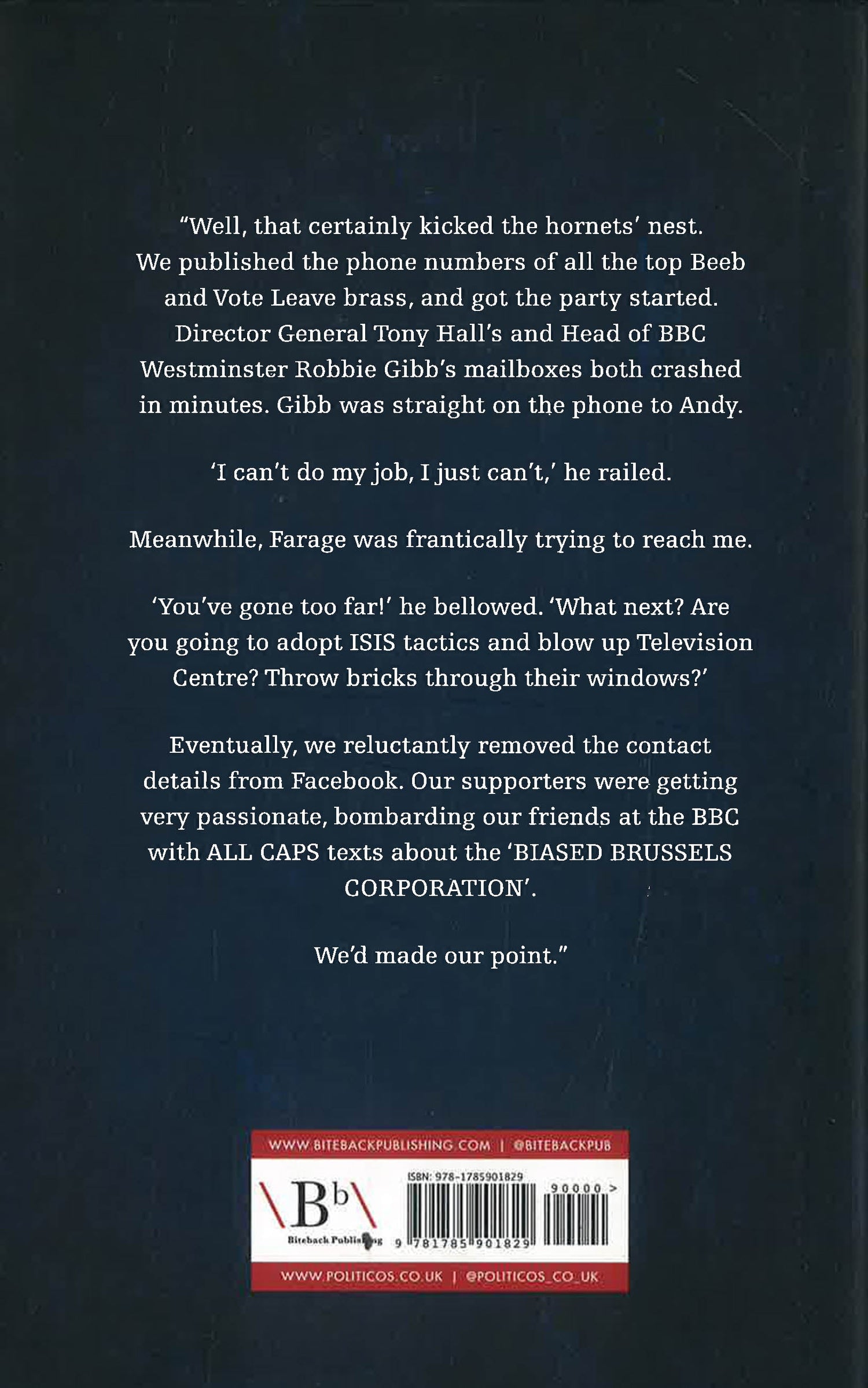 Arron Banks enjoyed a life of happy anonymity flogging car insurance in Bristol until he dipped his toes into the shark-infested waters of politics - and decided to plunge right in. Charging into battle for Brexit, he couldn't believe how Westminster types behaved, and resolved to fight for the country's future his own way.From a David Brent-style office on an industrial estate in the south-west, Banks masterminded an extraordinary social media campaign against the tyrannies of Brussels that became a mass movement for Brexit. He tore up the political rule book, sinking GBP8 million of his personal fortune into a madcap campaign targeting ordinary voters up and down the country.His anti-establishment crusade upset everyone from Victoria Beckham to NASA and left MPs open-mouthed. When his rabble-rousing antics landed him in hot water, he simply redoubled his efforts to wind up the targets. Lurching from comedy to crisis (often several times a day), he found himself in the glare of the media spotlight, fending off daily bollockings from Nigel Farage and po-faced MPs.From talking Brexit with Trump and trying not to embarrass the Queen, to courting communists and wasting a fortune on a pop concert that descended into farce, this is his honest, uncensored and highly entertaining diary of the campaign that changed the course of history.