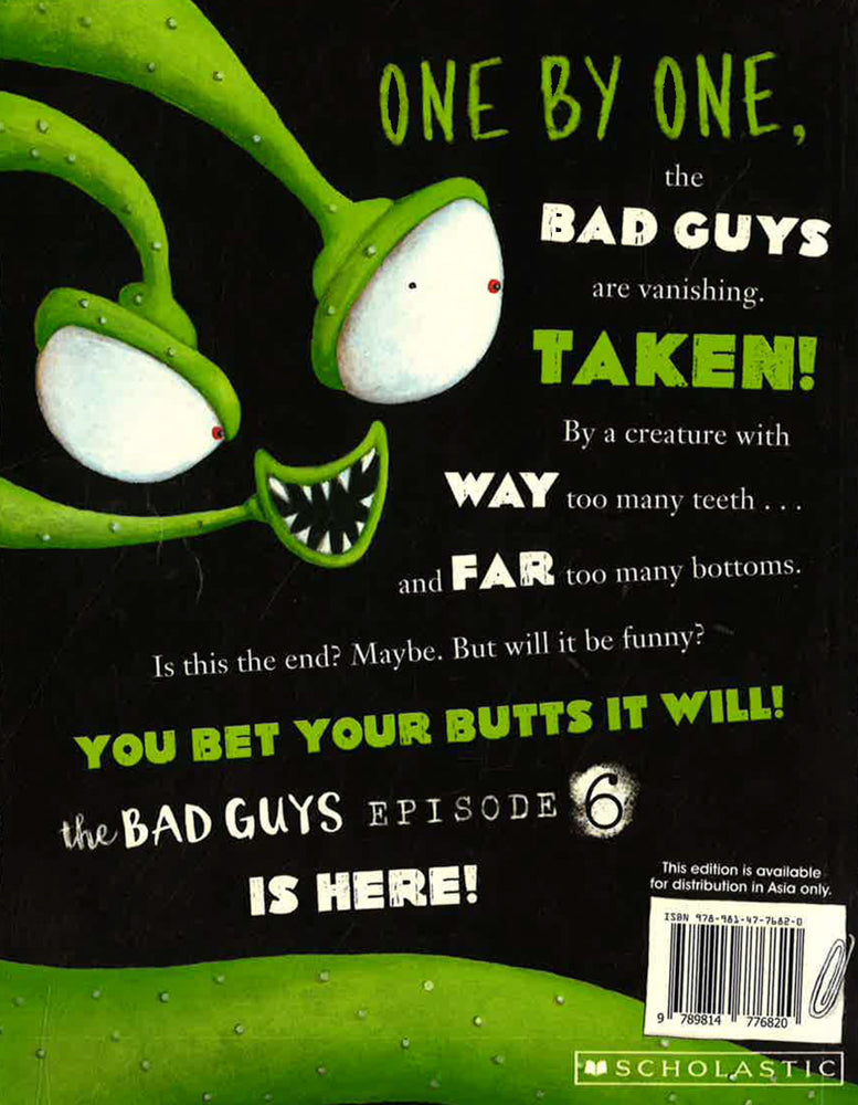 One by one, the Bad Guys are vanishing. TAKEN by a creature with way too many teeth and far too many bottoms. Is this the end? Maybe. But will it be funny? You bet your butts it will!
