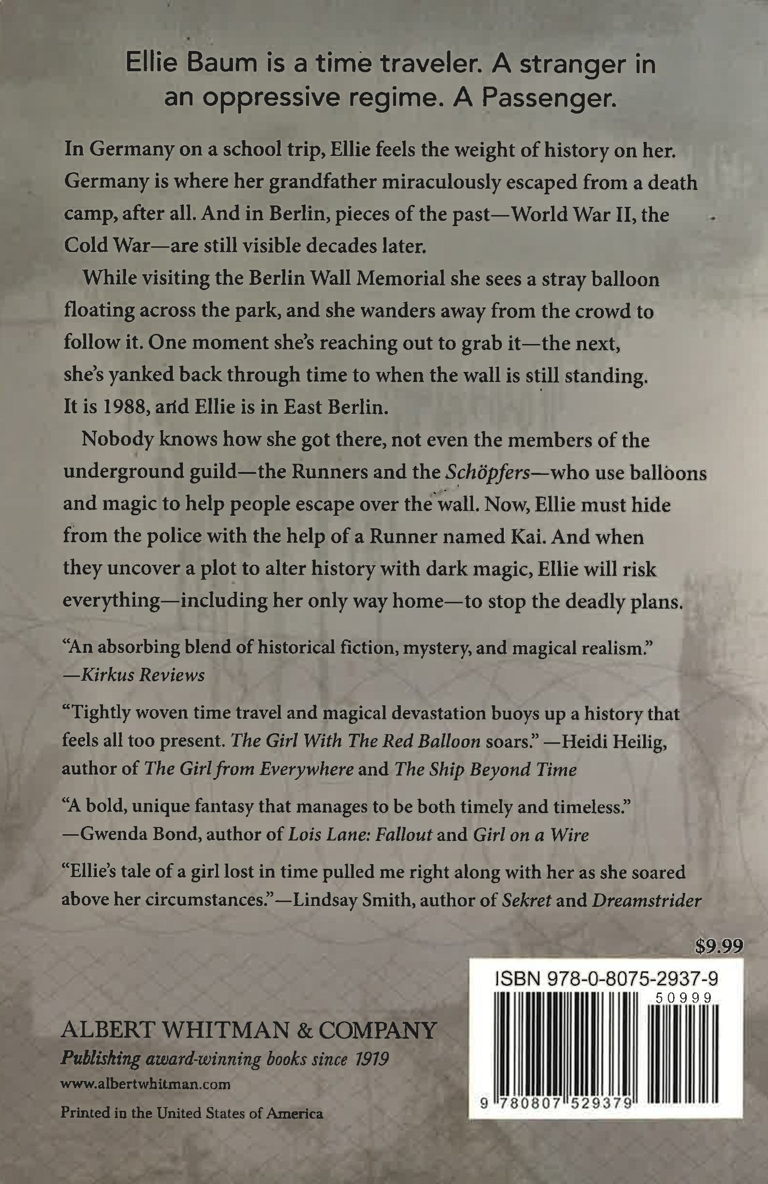 When sixteen-year-old Ellie Baum accidentally time-travels via red balloon to 1988 East Berlin, she's caught up in a conspiracy of history and magic. She meets members of an underground guild in East Berlin who use balloons and magic to help people escape over the Wall--but even to the balloon makers, Ellie's time travel is a mystery. When it becomes clear that someone is using dark magic to change history, Ellie must risk everything--including her only way home--to stop the process.