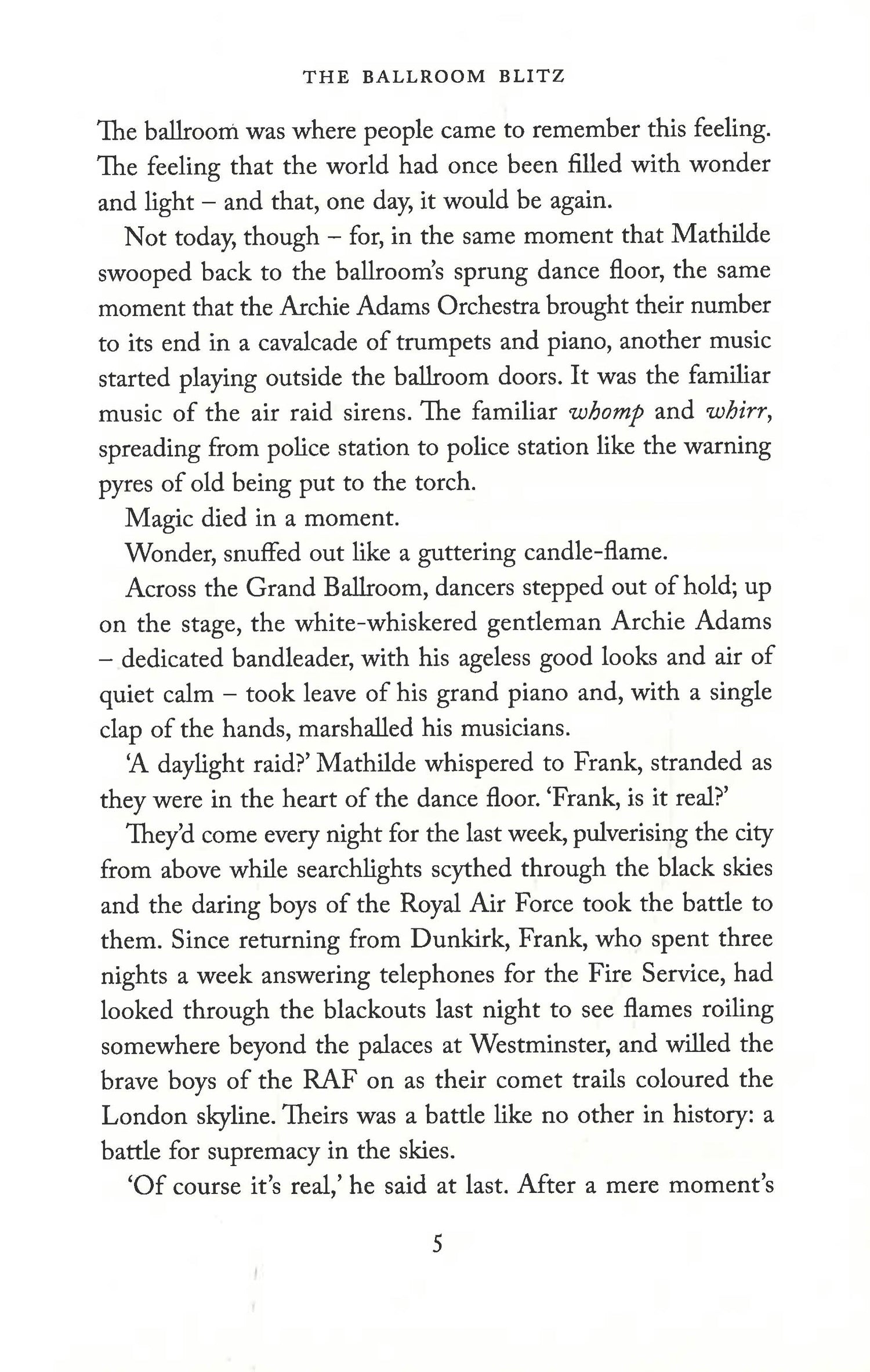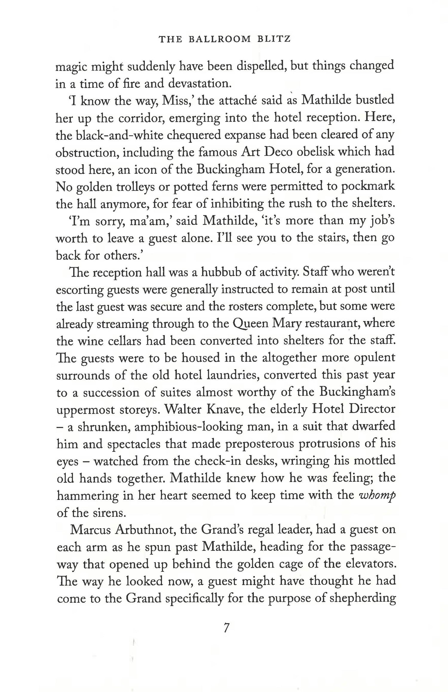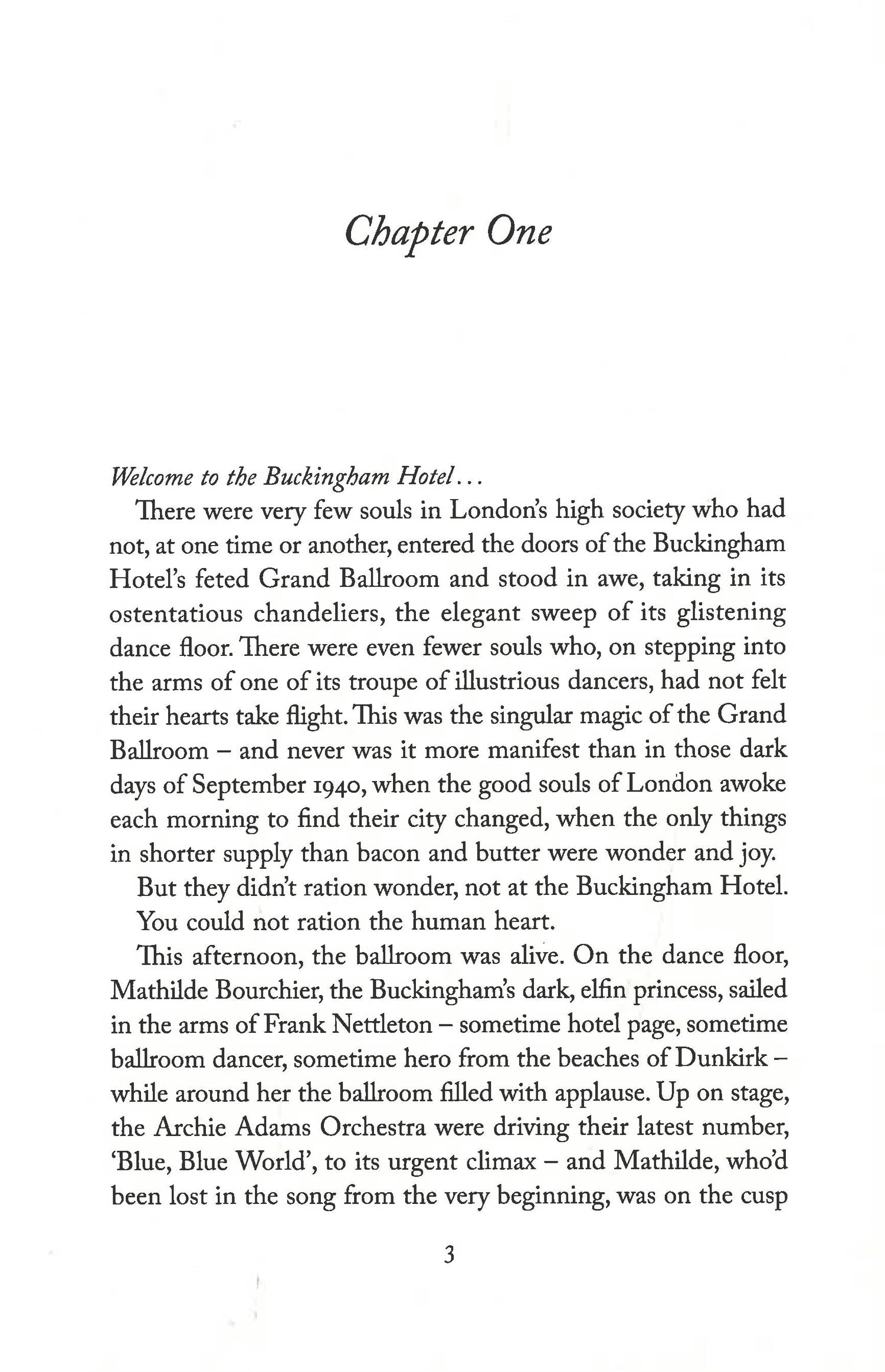 September 1940. As the skies split apart and bombs rain down on London, it's all the staff at the famed Buckingham Hotel can do to keep their guests in the luxury they're accustomed to, and evoke the magic of the Grand ballroom for them each night.