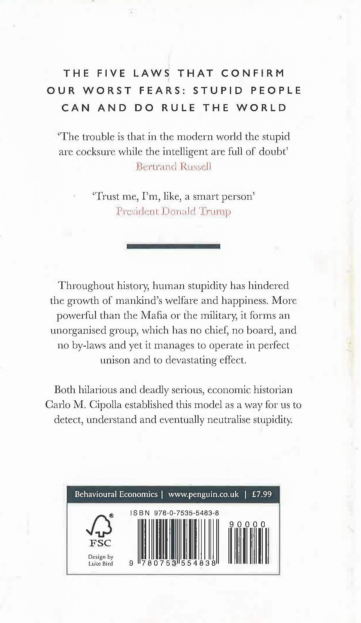 Carlo M. Cipolla (1922 - 2000) was an Italian economic historian, Fulbright Fellow and professor at the University of California, Berkeley. Cipolla was elected as a Corresponding Fellow of the British Academy in 1989 and awarded the International Balzan Prize for Economic History in 1995. He also held honorary degrees in Italy and Switzerland.His classic treatise The Basic Laws of Human Stupidity was first published in 1988 and has sold more than half a million copies worldwide in over ten languages.
