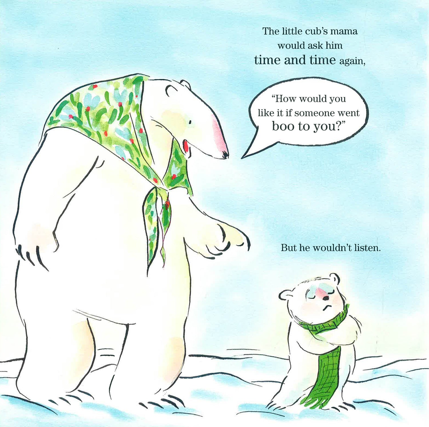 At the top of the world, surrounded by snow and ice, lives a very cheeky polar bear cub who loves to go…