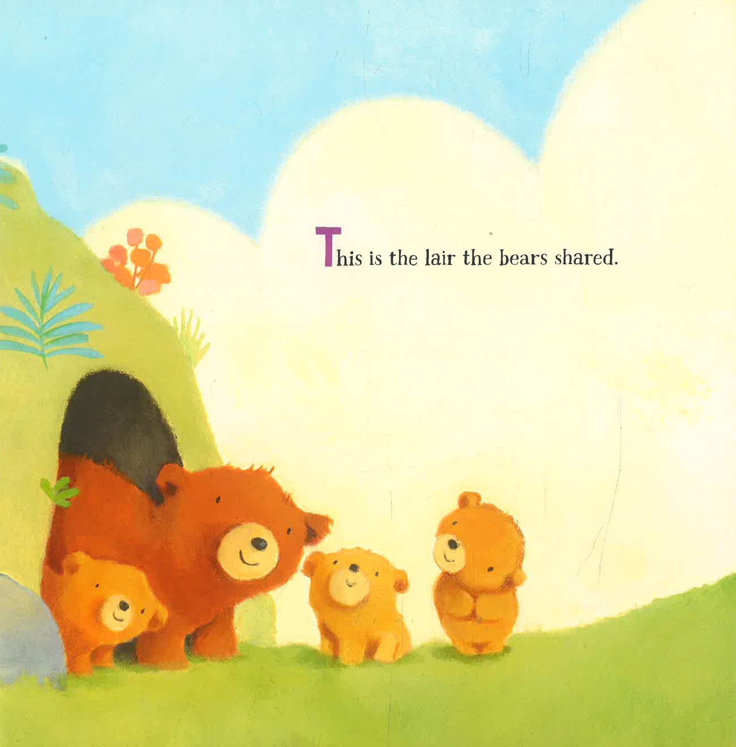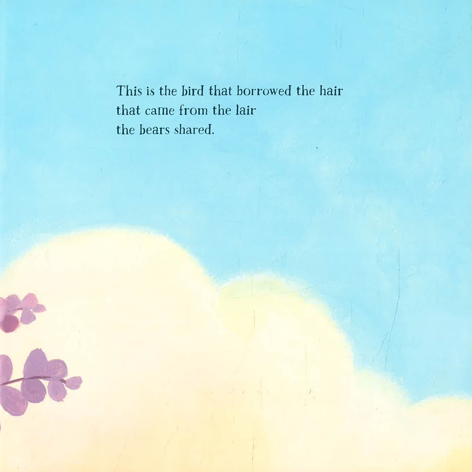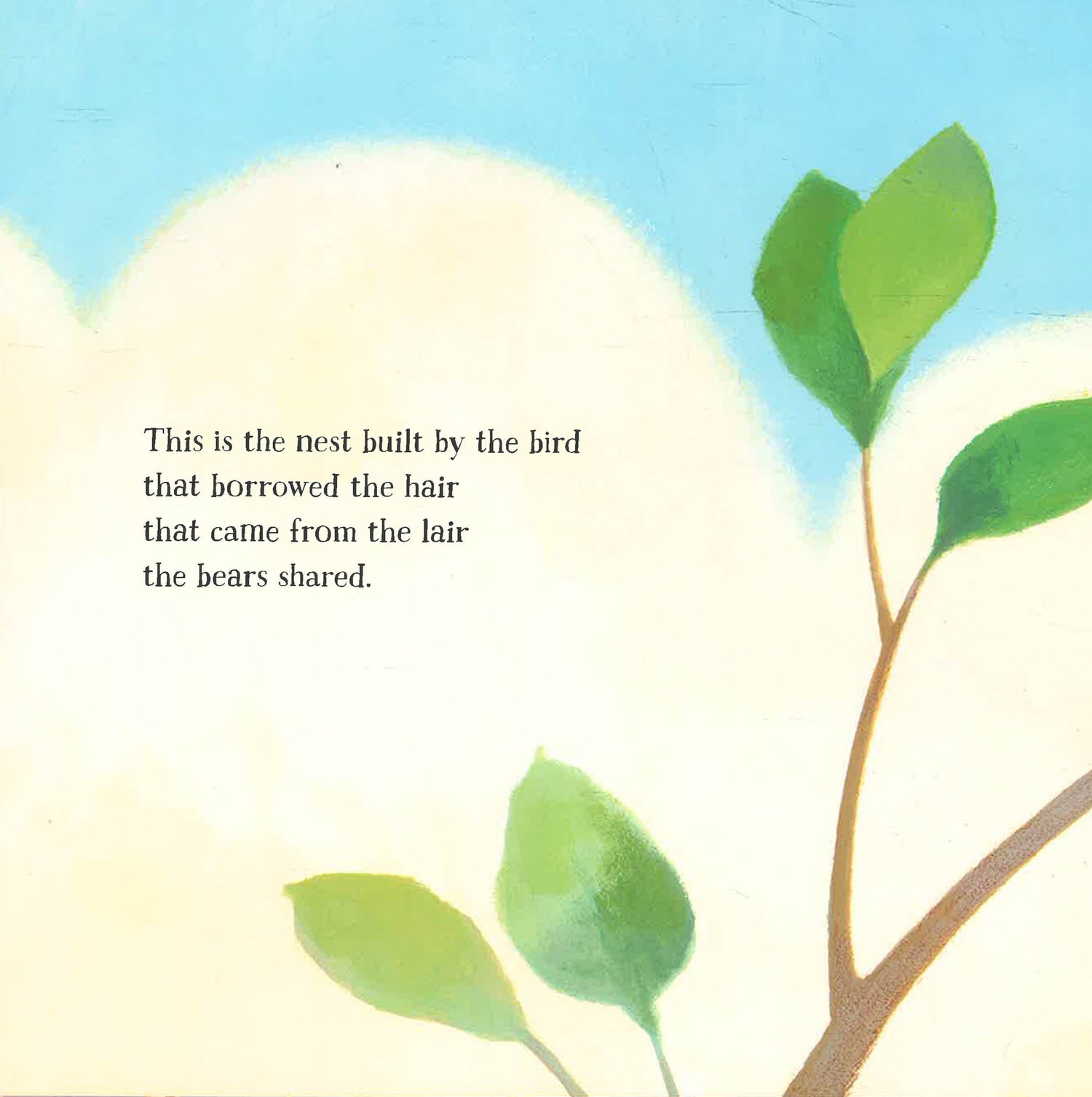 This is the lair the bears shared. This is the hair that came from the lair the bears shared. This is the bird that borrowed the hair from the lair, to built a nest for its family, in a tall-tall tree in the big wide forest, with branches that thrashed in thunder that crashed . . . and the animals that find home, and each other, among it all!