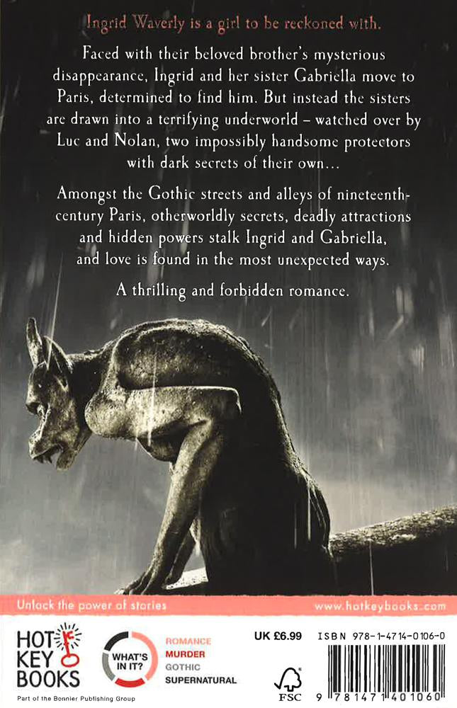 A compelling gothic romance set in Victorian Paris Ingrid Waverly is a young woman to be reckoned with. Faced with her brother's mysterious disappearance after an abrupt move to Paris, she is determined to discover what has happened to him. Soon she and her sister Gabriella are drawn into a Parisian underworld more terrifying than they could ever have imagined, but watching over them are two impossible (and impossibly handsome) young men. Luc is a 'Dispossessed', an ancient gargoyle whose sworn duty it is to protect the humans who inhabit his abbey. Nolan has secrets of his own too. He is a member of the Alliance - a shadowy group dedicated to keeping Paris safe from the demonic forces that threaten to destroy it. Secrets, danger and hidden powers stalk the girls in this beautifully imagined paranormal romance that will keep readers gripped from beginning to end - and one thing is for sure - you'll never look at a gargoyle in the same way again...