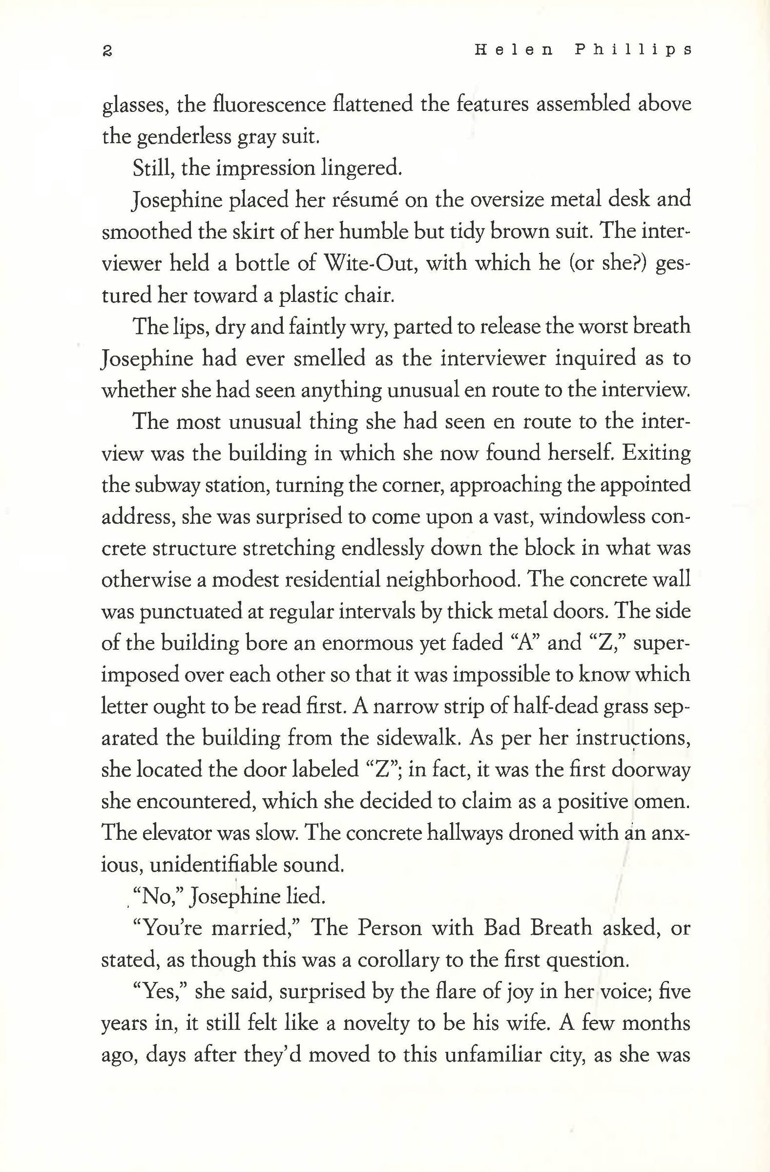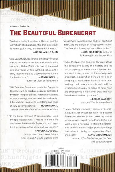 A young wife's new job pits her against the unfeeling machinations of the universe in this dazzling first novel Ursula K. Le Guin hails as "funny, sad, scary, beautiful. I love it." In a windowless building in a remote part of town, the newly employed Josephine inputs an endless string of numbers into something known only as The Database. After a long period of joblessness, she's not inclined to question her fortune, but as the days inch by and the files stack up, Josephine feels increasingly anxious in her surroundings - the office's scarred pinkish walls take on a living quality, the drone of keyboards echoes eerily down the long halls. When one evening her husband Joseph disappears and then returns, offering no explanation as to his whereabouts, her creeping unease shifts decidedly to dread. As other strange events build to a crescendo, the haunting truth about Josephine's work begins to take shape in her mind, even as something powerful is gathering its own form within her. She realizes that in order to save those she holds most dear, she must penetrate an institution whose tentacles seem to extend to every corner of the city and beyond. Both chilling and poignant, The Beautiful Bureaucrat is a novel of rare restraint and imagination. With it, Helen Phillips enters the company of Murakami, Bender, and Atwood as she twists the world we know and shows it back to us full of meaning and wonder - luminous and new.