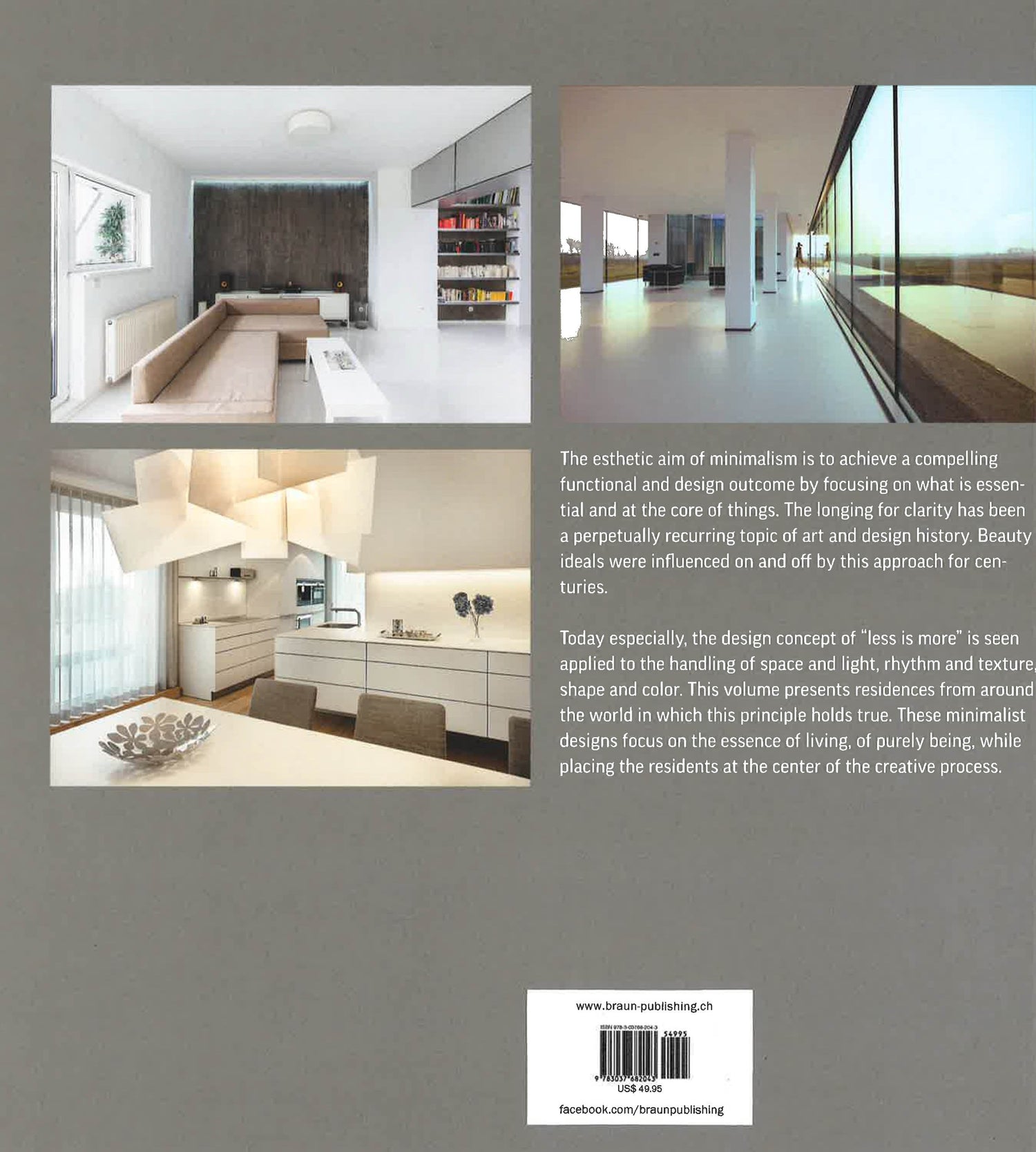Less is More" is one of the most frequently quoted and most influential principles of Ludwig Mies van der Rohe. It demands abstraction, functionality and clarity. The minimalist design approach applies to space and light, rhythm and texture, shape and color. "Less is more" is also the common denominator of the projects that were carefully selected for this volume. The presented contemporary minimalist residential designs from around the world focus on the essence of life, of purely being, while placing the residents at the center of the work. The synopsis proves that nowadays in particular, a focus on the most essential is an important interior design theme that can lead to outstanding results.