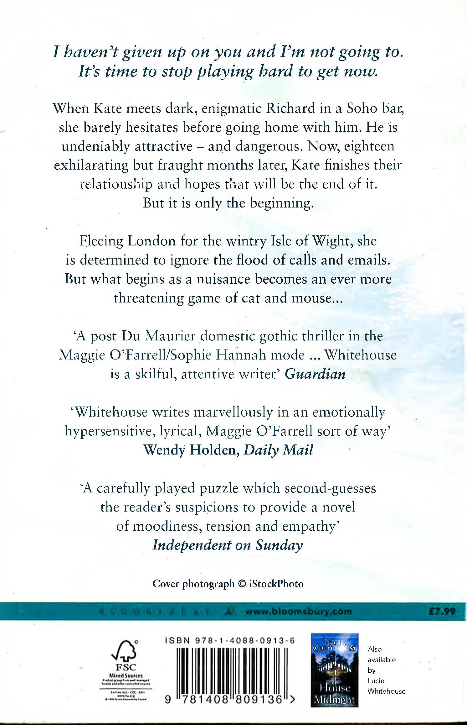 I haven't given up on you and I'm not going to. It's time to stop playing hard to get now. When Kate meets a dark, enigmatic man in a Soho bar, she doesn't hesitate long before going home with him. There is something undeniably attractive about Richard - and irresistibly dangerous, too. Now, after eighteen exhilarating but fraught months, Kate knows she has to finish their relationship and hopes that will be the end of it. But it is only just the beginning. Fleeing London for the wintry Isle of Wight, she is determined to ignore the flood of calls and emails from an increasingly insistent Richard. But what began as a nuisance becomes an ever more threatening game of cat and mouse.