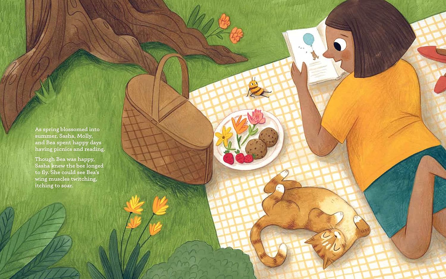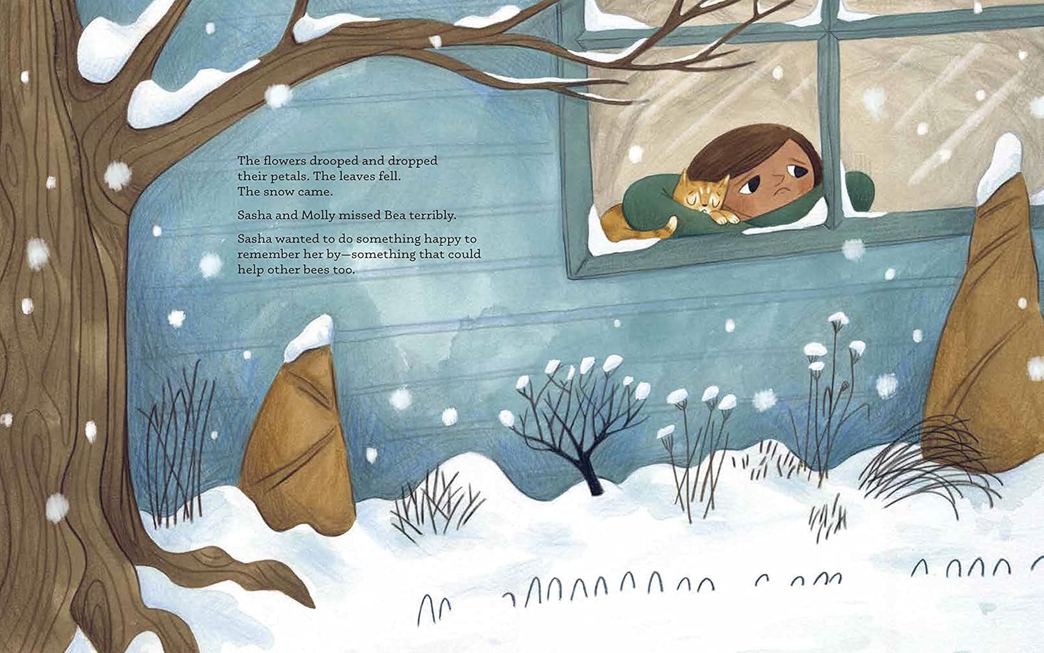 An unexpected friendship between a girl and a wingless bee from a garden warmly teaches young readers about friendship and loss