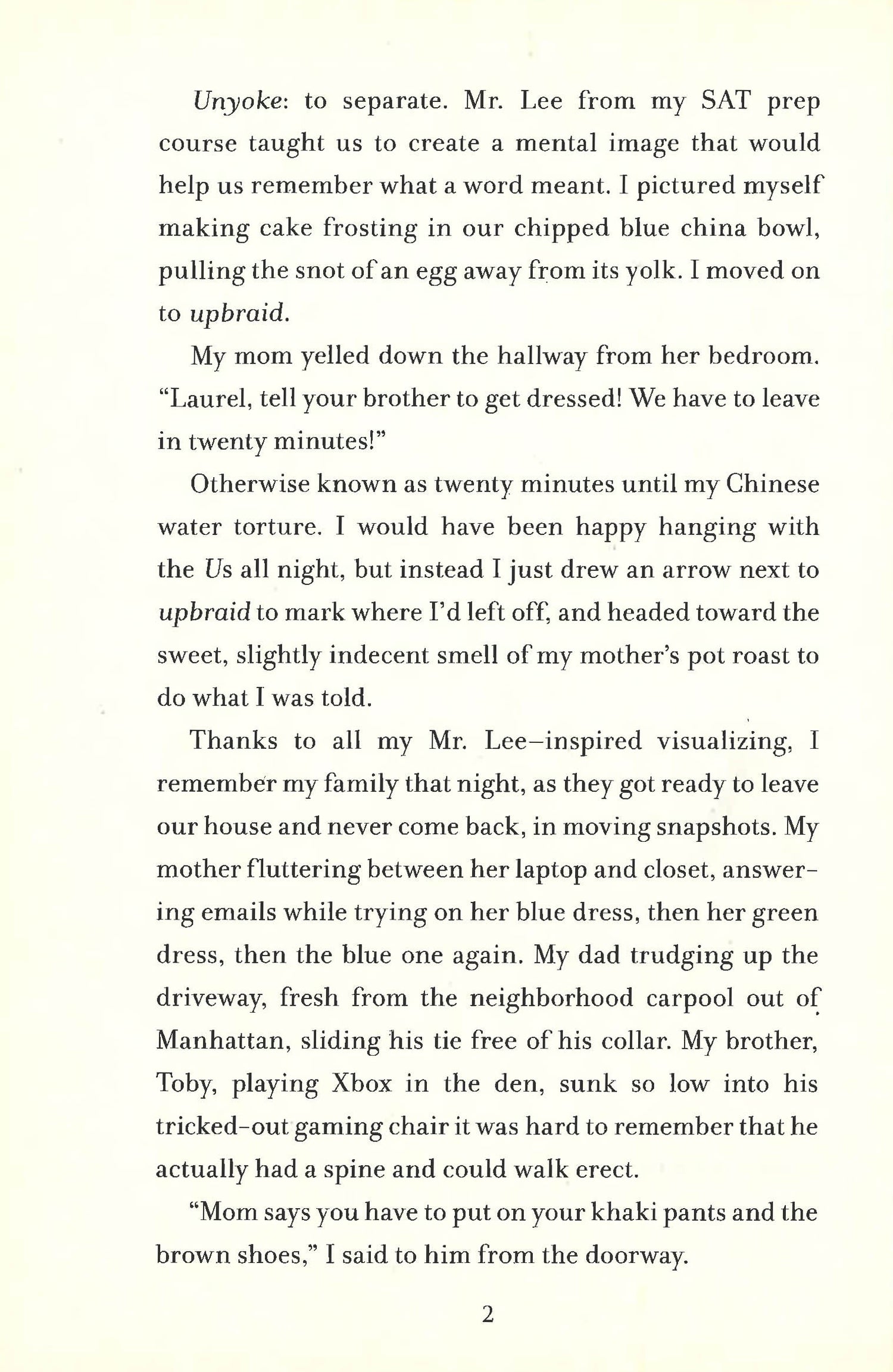 When Laurel’s family dies in a horrific car accident, she struggles to put her life back together. She is now connected to David Kaufman, who lives down the block, and who lost his mother in the same crash. Both of their lives change—but not in the ways that they thought…