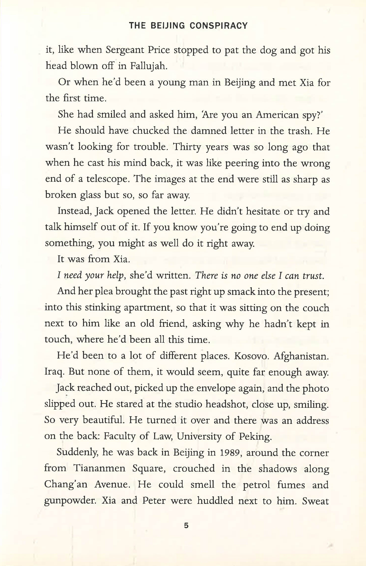 Soon he's on a plane to China, a country he hasn't returned to since witnessing the atrocities of the Tiananmen Square massacre. But on his search he stumbles upon a document which both the Chinese and American governments are desperately chasing. Now Jack is trapped in an impossible dilemma: save his daughter or prevent a new world war where thousands will lose their lives.