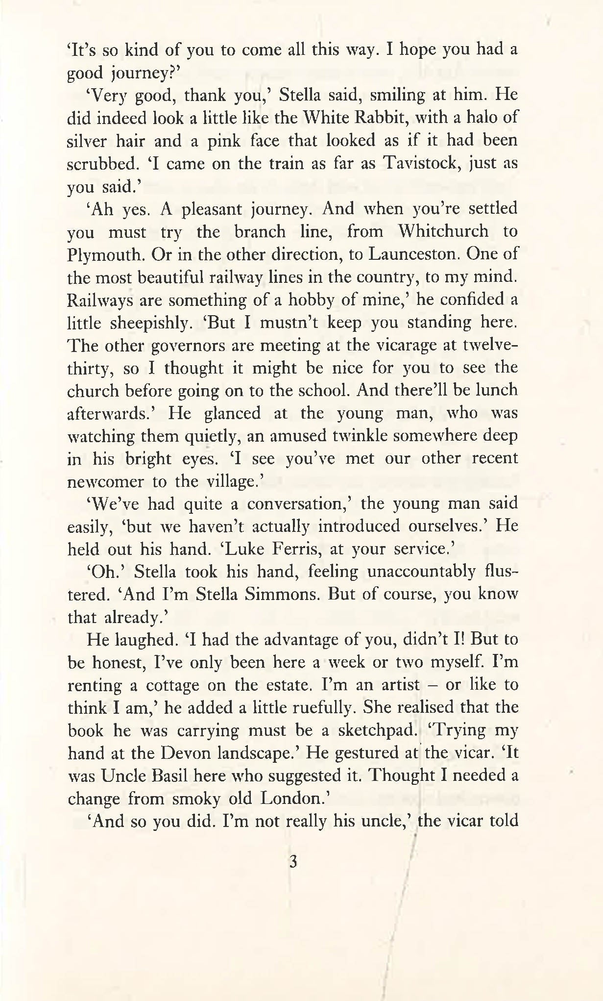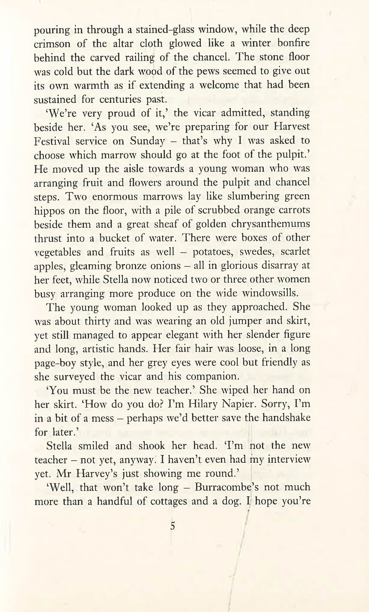 When Stella Simmons comes to the Devonshire village of Burracombe to start her teaching career, she is alone in the world. Orphaned as child and brought up in a children's home, she was separated from her sister Muriel and has never been able to trace her.