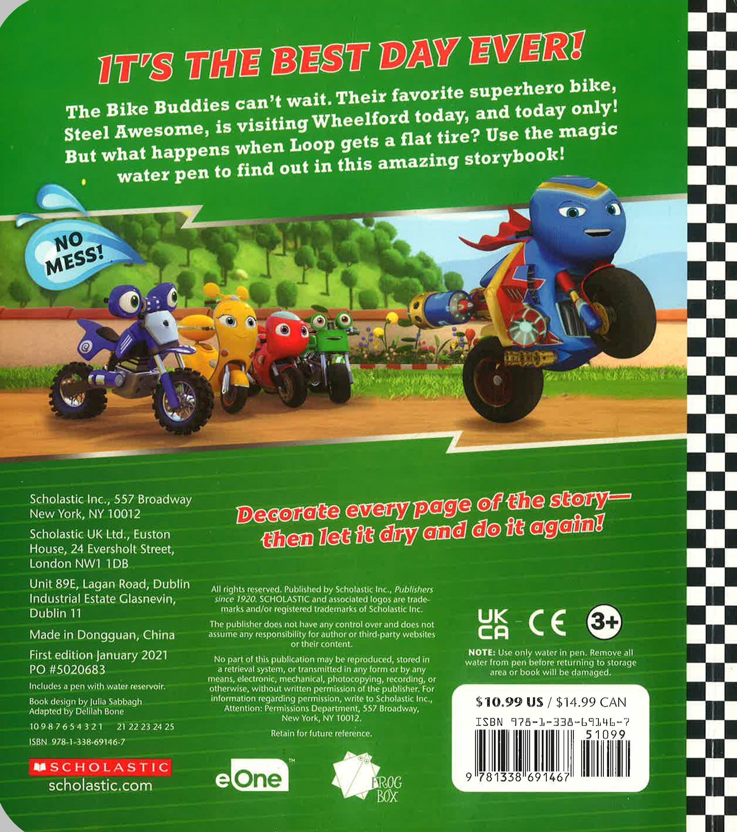 The Bike Buddies can't wait. Their favorite superhero bike, Steel Awesome, is visiting Wheelford! But what happens when Loop gets a flat tire? Use the magic water pen to find out in this amazing storybook!
