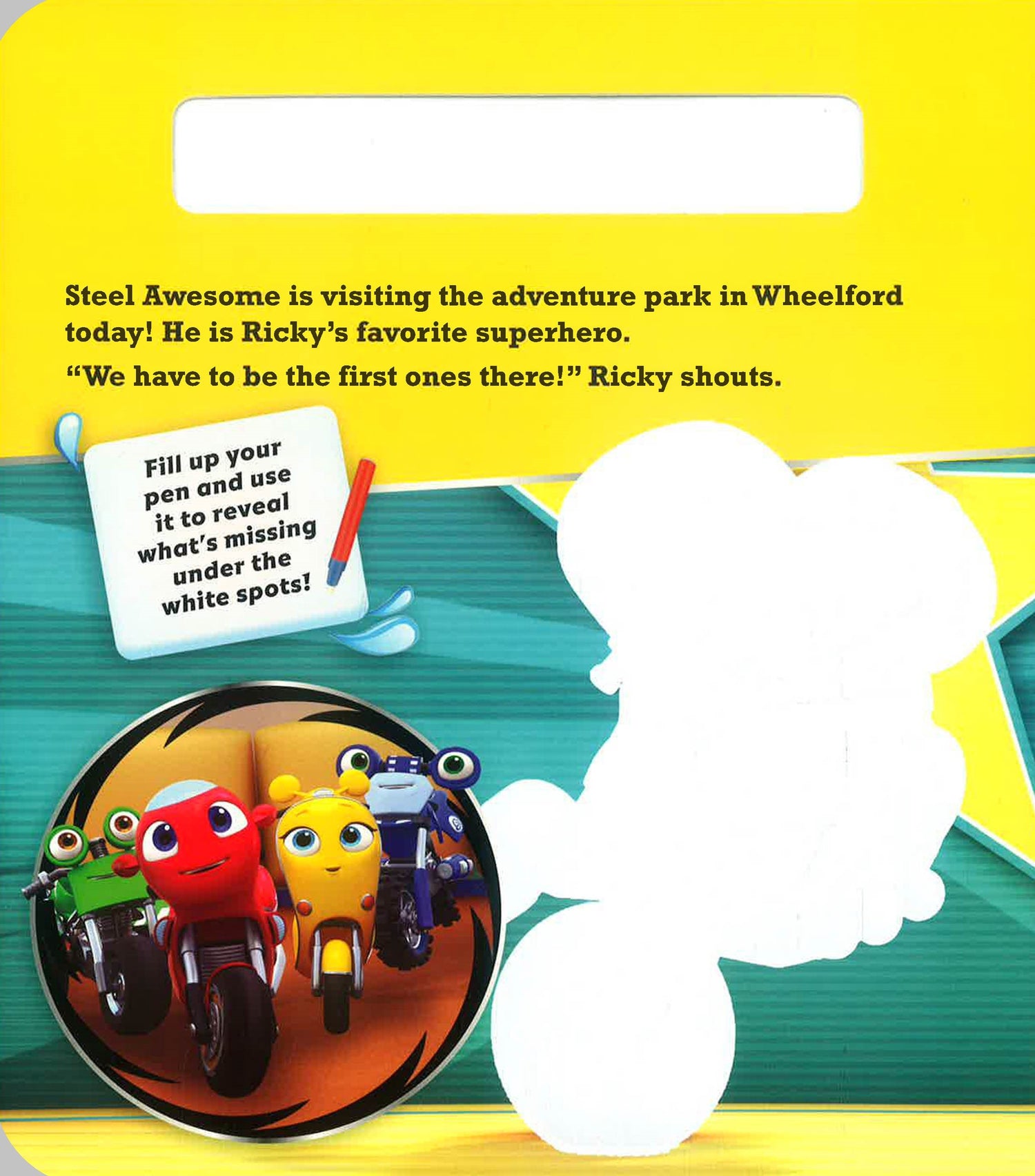 Decorate every page of the story, then let it dry and do it again! It's the perfect mess-free activity for any Ricky Zoom fan to take on the go! Based on the hit TV show on Nick Jr.