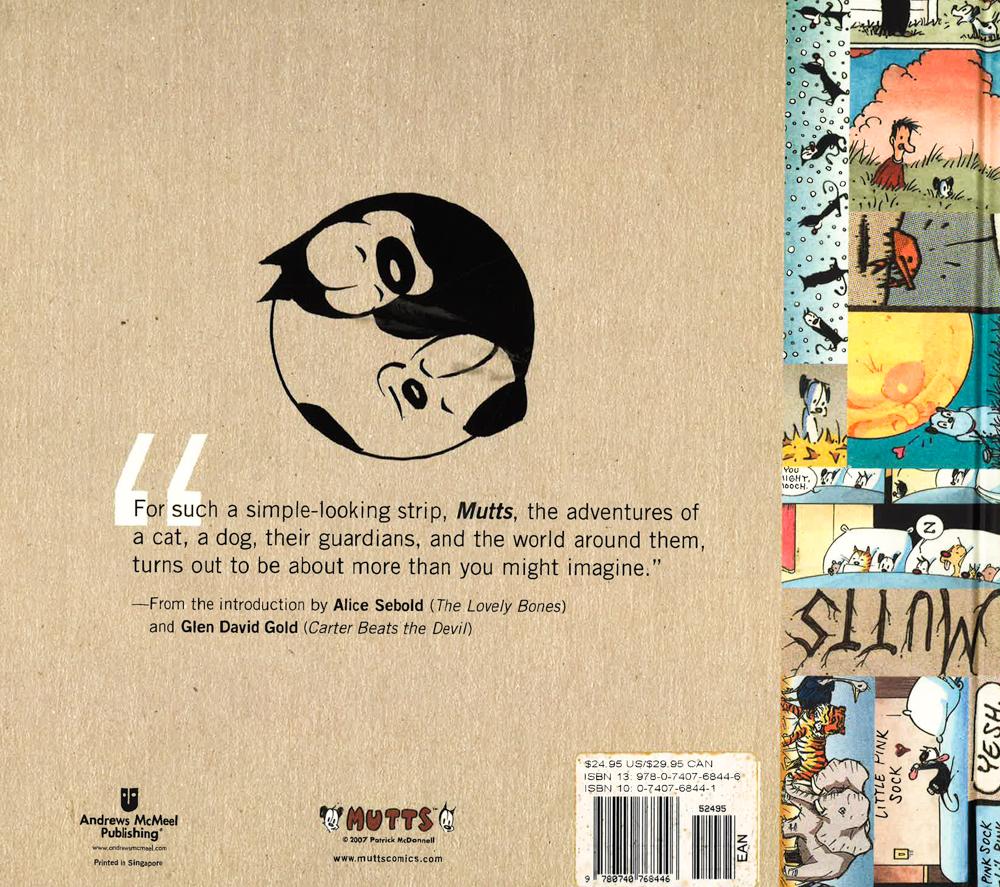Ten years. A decade. In dog and cat years it's even longer, and in cartooning years, well, it's just plain rare to maintain the popularity and consistent excellence that "Mutts" and Patrick McDonnell have achieved. In The Best of Mutts the 17th and first-ever hardcover with Andrews McMeel Publishing "Mutts" cartoon collection, McDonnell selects his favorite strips from the past 10 years. Certain to be a much-sought-after holiday gift and a special tome for collectors and fans, this collection is divided into ten chapters, each featuring an introduction by McDonnell. Earl and Mooch, along with supporting sidekicks Shtinky Puddin', Sourpuss, Guard Dog, and Crabby, are featured. Including the Gift of Nothing, the introduction of the pink sock, belly rubs, angel visits, and the formation of the Mutts Book Club, this treasury collects more than 300 poignantly entertaining "Mutts" strips. Always striking a delicate balance between lighthearted fun and responsible social commentary, McDonnell's work has been recognized by critics and the popular press for its distinctive style, heartwarming humor, and strong yet non-preachy stand on responsible pet ownership, animal protection and advocacy, art and artist appreciation, the celebration of nature, and the sanctity of all life. Mutts" appears in 700 newspapers in over 20 countries and receives about two million visits each month to its official Web site, muttscomics.com