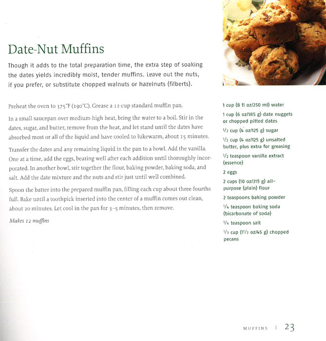 Provides recipes for a variety of baked goods, including muffins, breads, cookies, brownies, cakes, pizzas, and pies, along with information on baking techniques.