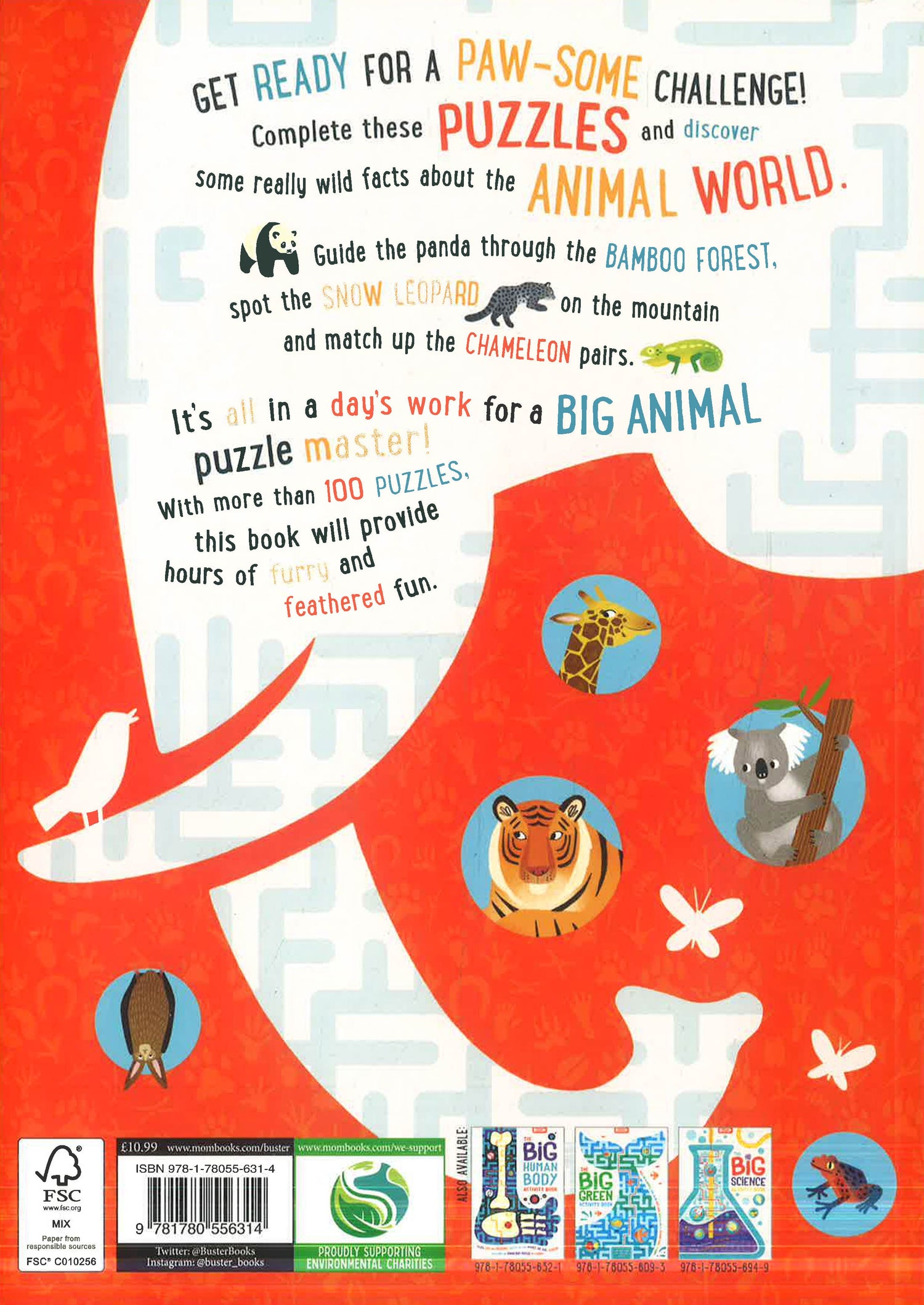 Part of Buster’s brand-new ‘Big Activity Book’ series and packed with over 100 puzzles and games, The Big Animal Activity Book is bursting with fun and fact-filled activities for kids who are wild about wildlife.