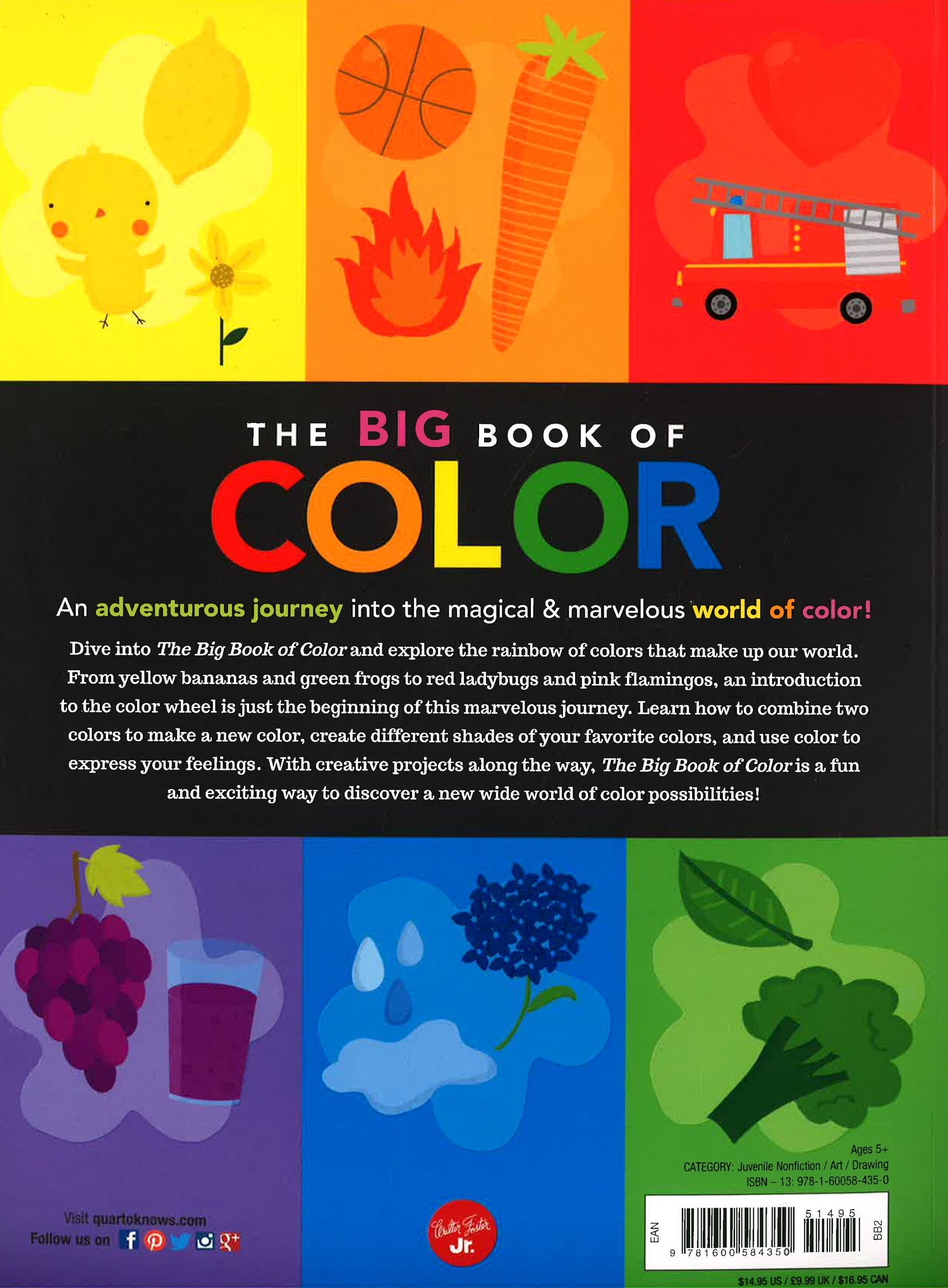 The Big Book of Color introduces children to the art and science of color through a fun and engaging, easy-to-understand approach. With The Big Book of Color, young artists will be treated to an in-depth exploration of the wonderful world of color through simple step-by-step projects and unique educational content. Commencing with an introduction to color basics, children will learn about the color wheel, complementary colors, warm and cool colors, color mood, and much more. Young artists will also learn how to combine two colors to create new colors. Additionally, they will discover how to use a monochromatic color scheme; pair complementary colors for impact; and all about the various tints, tones, and shades of their favorite colors. TheBig Book of Color also invites children to dive into the main color groups and explore the various shades of red, green, blue, yellow, purple, and pink through a range of artwork and a series of colorful, fun step-by-step projects. Myriad creative exercises and projects throughout the book make learning color concepts fun and applicable, while perforated pages make it easy to display new masterpieces. With a plethora of fun projects, easy-to-understand concepts, and pages bursting with color, The Big Book of Color is sure to be a hit for young readers and budding artists everywhere.