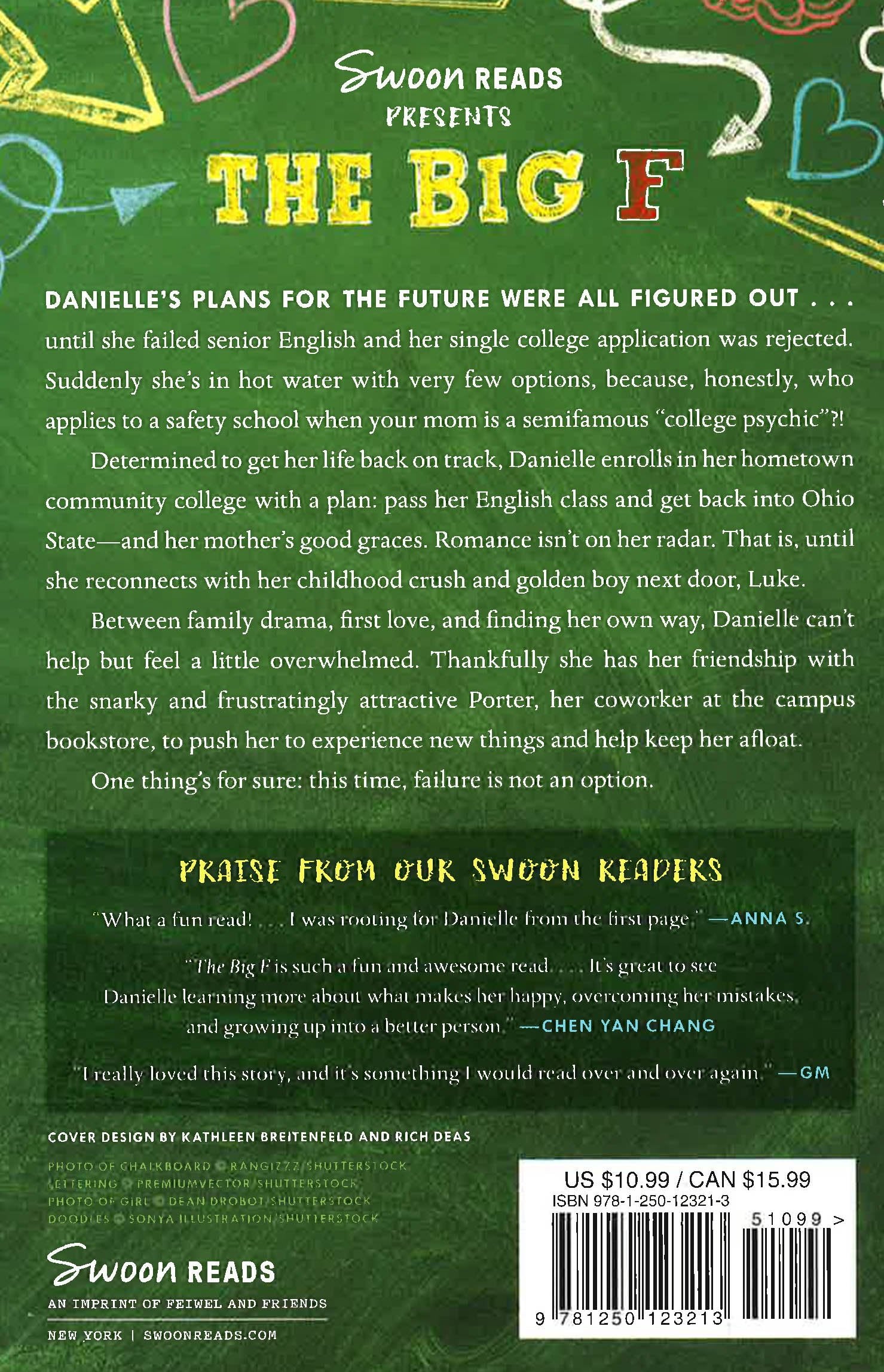 Danielle's plans for the future were all figured out . . . until she failed senior English and her single college acceptance was rescinded. Determined to get her life back on track, Danielle enrolls in her hometown community college with a plan: pass English and get back into Ohio State - and her mother’s good graces. Romance isn't on her radar . . . until she reconnects with her childhood crush and golden boy next door, Luke.Between family drama, first love and finding her own way, Danielle can't help but feel a little overwhelmed. Thankfully she has her friendship with the snarky and frustratingly attractive Porter, her coworker at the campus bookstore, to push her to experience new things and help keep her afloat. One thing's for sure: This time, failure's not an option.