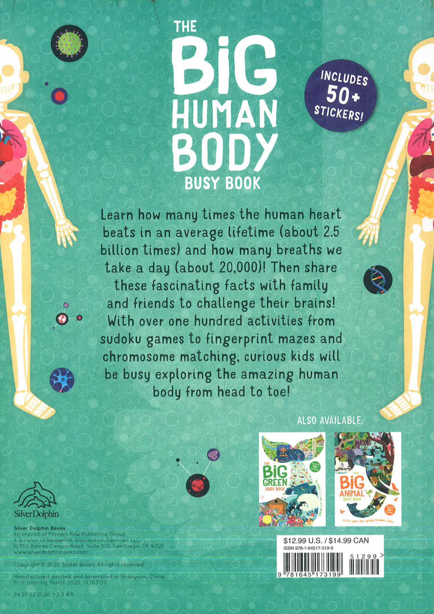 Learn how many times the human heart beats in an average lifetime (about 2.5 billion times) and how many breaths we take a day (about 20,000)! Then share these fascinating facts with family and friends to challenge their brains! With more than 100 activities from Sudoku games to fingerprint mazes and chromosome matching—plus over 50 stickers—curious kids will be busy exploring the incredible human body from head to toe in this amazing STEM activity book.