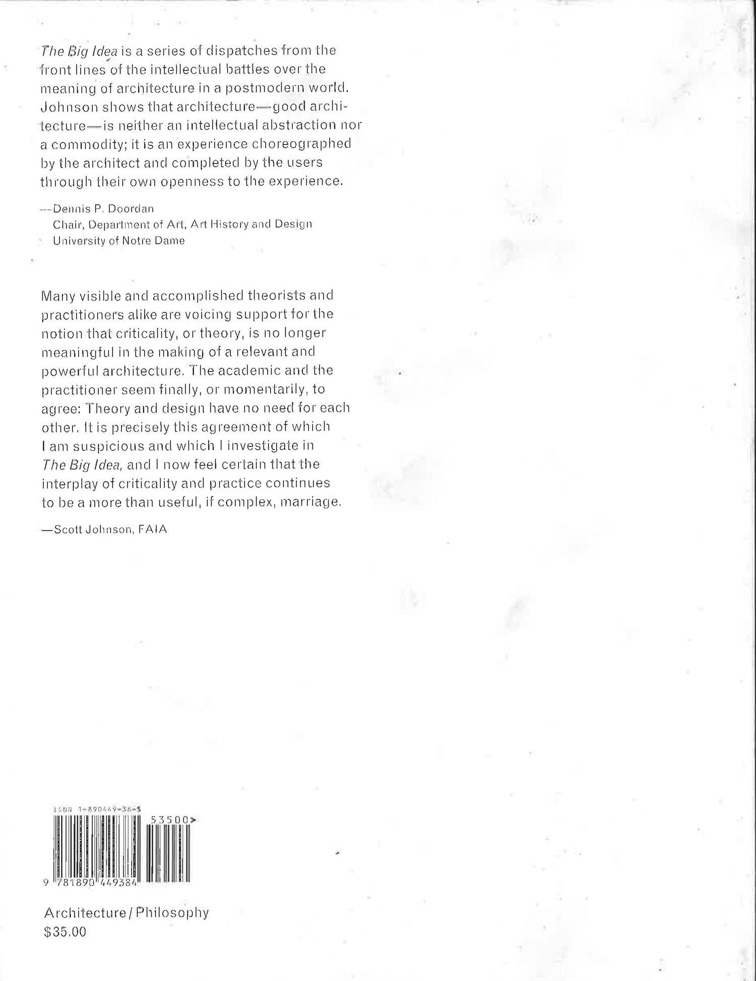 Taking an applied look at big theoretical ideas, this is an accessible read of complex philosophical ideas. It includes a bibliographic reference of critical architectural thinkers - vital information for students and professional designers alike. This book uses an autobiographical approach to explore issues of how large theoretical ideas influence (or not) day-to-day architectural practice. The author, Scott Johnson, has over the last few decades been privileged to work in rarified environments in Berkeley, New York and Los Angeles where big ideas were emerging. His professional experiences with some of the most important names in the industry are both informative and entertaining in this very personal journey through the overarching themes of contemporary architecture and the discovery of professional practice.
