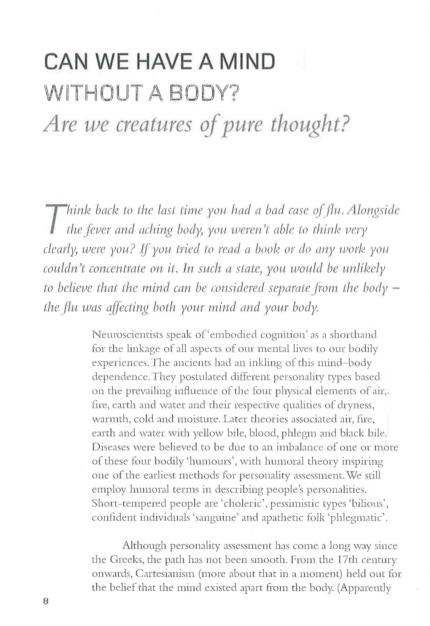 'The Big Questions' series is designed to let renowned experts confront the 20 most fundamental and frequently asked questions of a major branch of science or philosophy. In 'The Big Questions: Mind' the explanations behind the 'mysteries' of our unique minds - including how they differ from our brains and how they create our awareness - are explored. Among the questions discussed are: How do brains come to exist? Is the mind more than the brain? What does it mean to be conscious? What is knowledge? Does the mind play tricks? What is the 'I' in our brain?