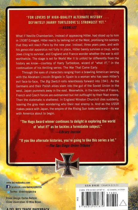 In 1941 Winston Churchill was Hitler's worst enemy. Then a Nazi secret agent changed everything. What if Neville Chamberlain, instead of appeasing Hitler, had stood up to him in 1938? Enraged, Hitler reacts by lashing out at the West, promising his soldiers that they will reach Paris by the new year. Instead, three years pass, and with his genocidal apparatus not fully in place, Hitler barely survives a coup, while Jews cling to survival, and England and France wonder whether the war is still worthwhile. The stage is set for World War II to unfold far differently from the history we know--courtesy of Harry Turtledove, wizard of "what if?," in the continuation of his thrilling series: The War That Came Early. Through the eyes of characters ranging from a brawling American serving with the Abraham Lincoln Brigade in Spain to a woman who has seen Hitler's evil face-to-face, The Big Switch rolls relentlessly forward into 1941. As the Germans and their Polish allies slam into the gut of the Soviet Union in the west, Japan pummels away in the east. Meanwhile, in the trenches of France, French and Czech forces are outmanned but not outfought by their Nazi enemy. Then the stalemate is shattered. In England Winston Churchill dies suddenly, leaving the gray men wondering who their real enemy is. And as the USSR makes peace with Japan, the empire of the Rising Sun looks westward--its war with America about to begin.