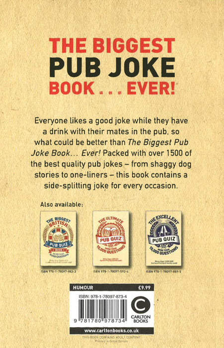 Everyone likes a good joke while they have a drink with their chums in the pub, so what could be better than The Biggest Pub Joke Book? It contains 1,500 superb jokes of all descriptions, very much only suitable for adults!