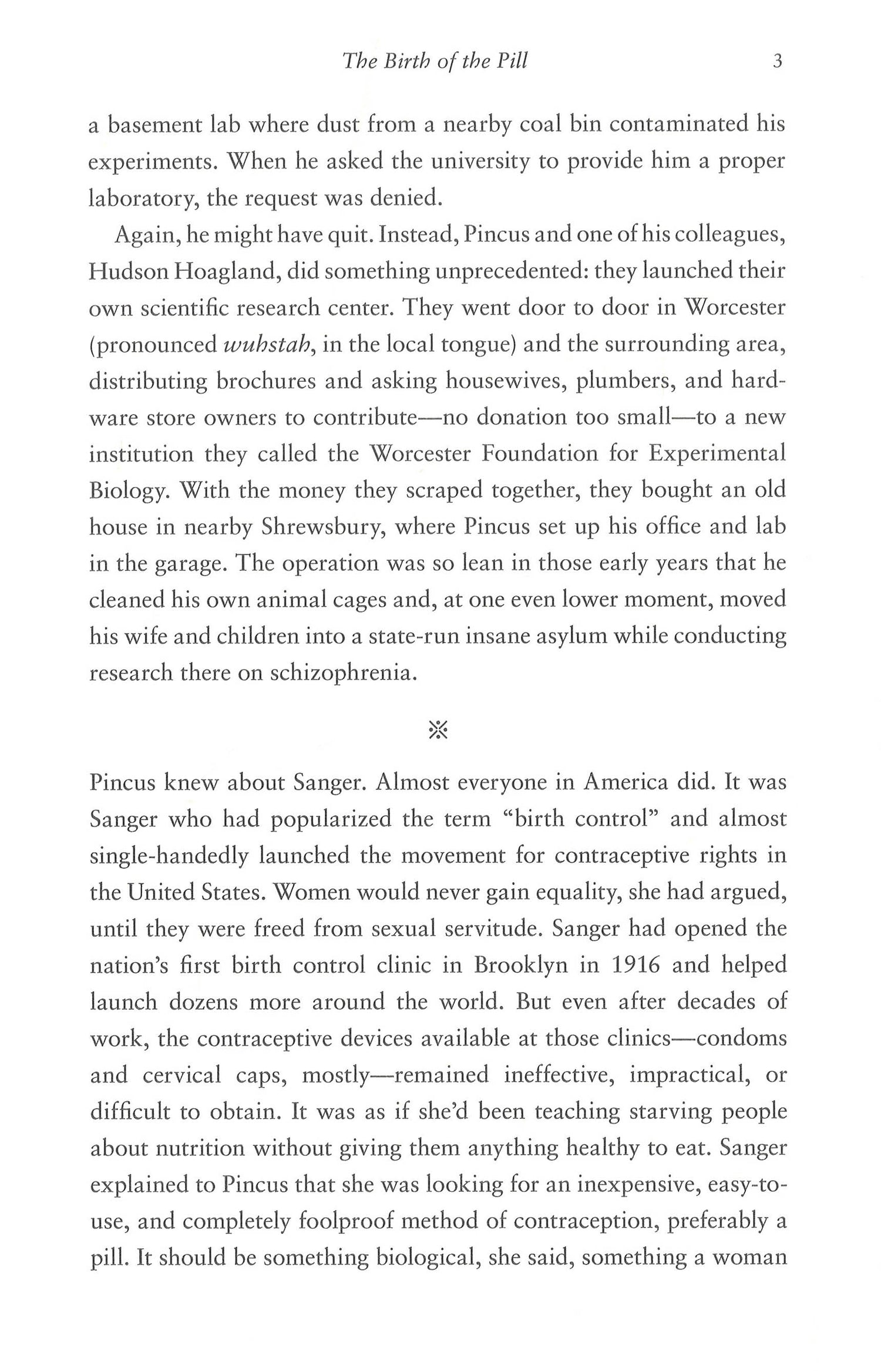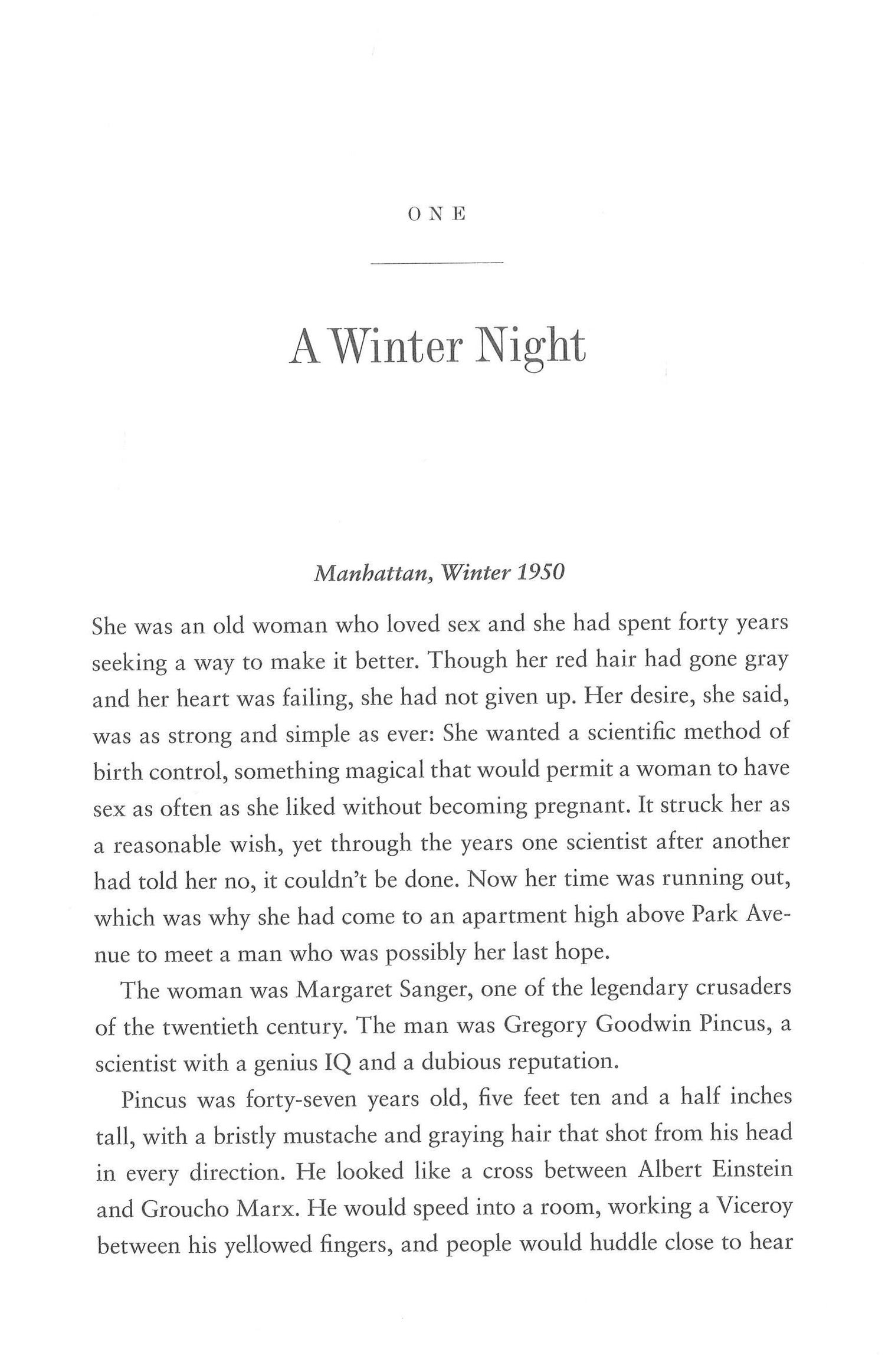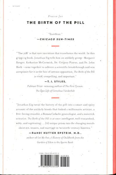 We know it simply as "the pill," yet its genesis was anything but simple. Jonathan Eig's masterful narrative revolves around four principal characters: the fiery feminist Margaret Sanger, who was a champion of birth control in her campaign for the rights of women but neglected her own children in pursuit of free love; the beautiful Katharine McCormick, who owed her fortune to her wealthy husband, the son of the founder of International Harvester and a schizophrenic; the visionary scientist Gregory Pincus, who was dismissed by Harvard in the 1930s as a result of his experimentation with in vitro fertilization but who, after he was approached by Sanger and McCormick, grew obsessed with the idea of inventing a drug that could stop ovulation; and the telegenic John Rock, a Catholic doctor from Boston who battled his own church to become an enormously effective advocate in the effort to win public approval for the drug that would be marketed by Searle as Enovid.