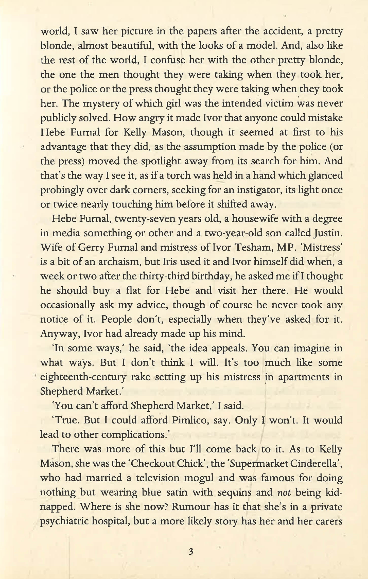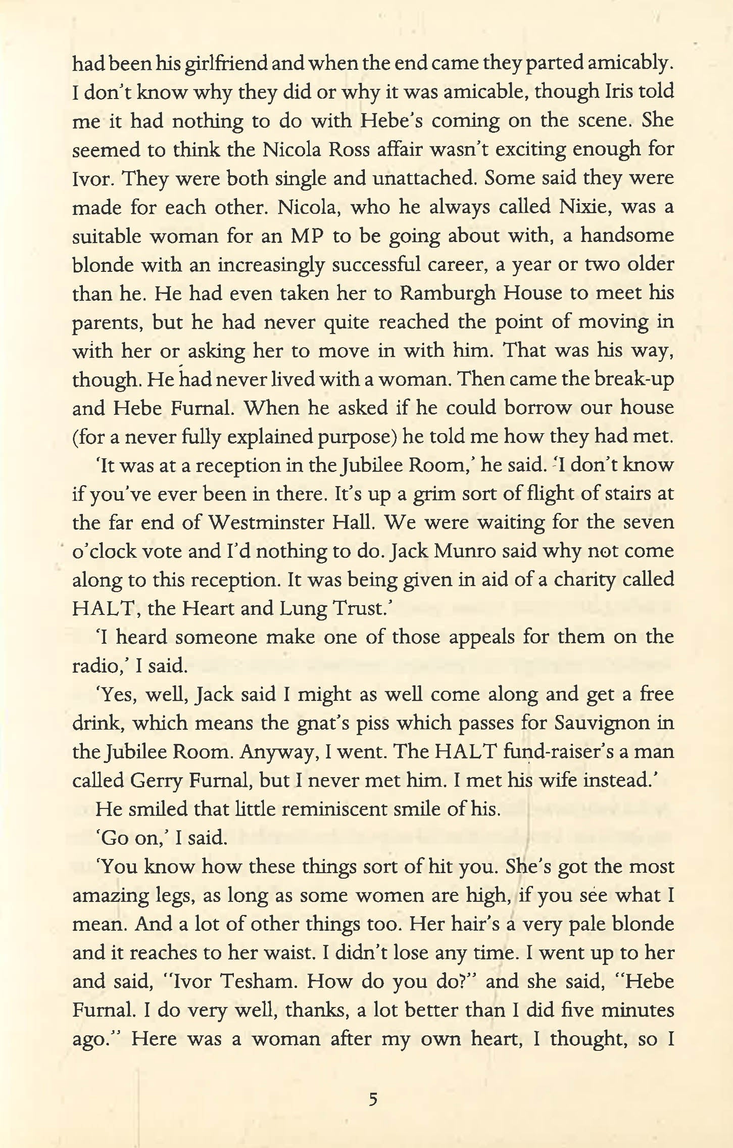 Ivor Tesham is a handsome, single, young member of Parliament whose political star is on the rise. When he meets a woman in a chance encounter–a beautiful, leggy, married woman named Hebe–the two become lovers obsessed with their trysts, spiced up by what the newspapers like to call “adventure sex.”
