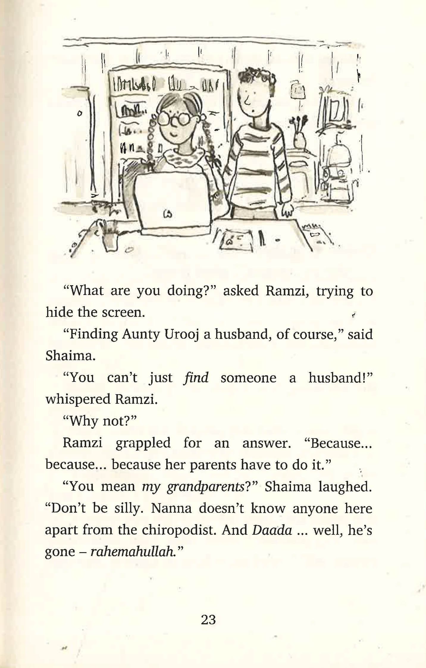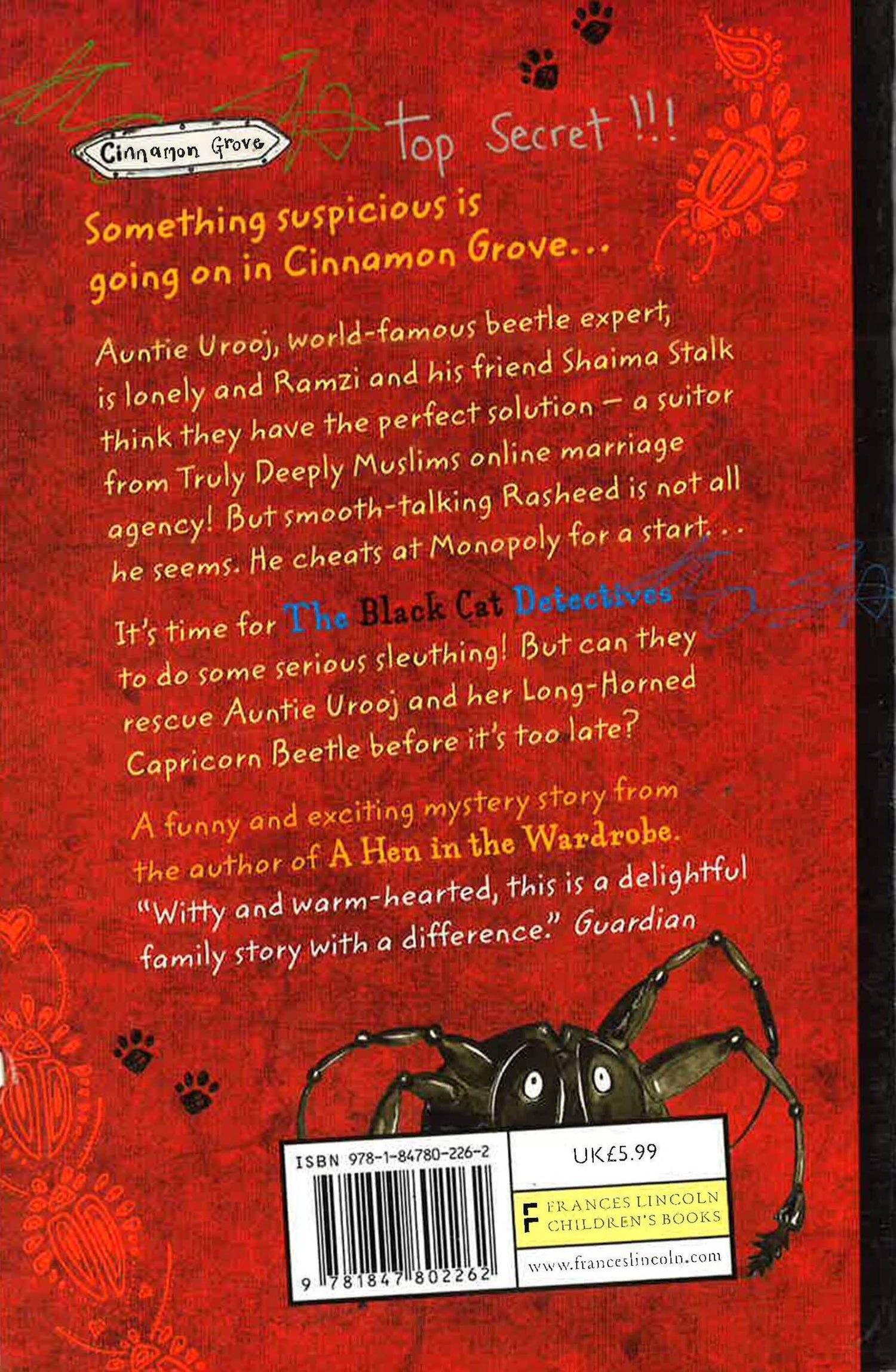 Something suspicious is going on in Cinnamon Grove...Auntie Urooj, world-famous beetle expert, is lonely and Ramzi and his friend Shaima Stalk think they have the perfect solution - a suitor from Truly Deeply Muslims online marriage agency! But smooth-talking Rasheed is not all he seems. He cheats at Monopoly, for a start...It's time for the Black Cat Detectives to do some serious sleuthing! But can they rescue Auntie Urooj and her Long-Horned Capricorn Beetle before it's too late? A funny exciting mystery story from the author of A Hen in the Wardrobe.