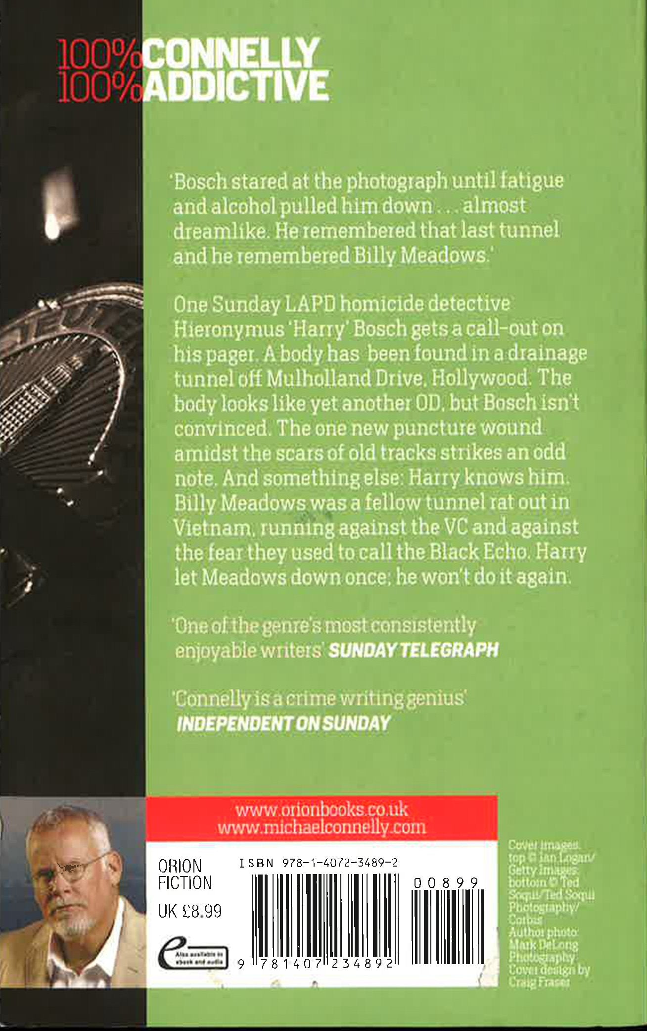 To make matters worse, Harry Bosch recognises the victim. Billy Meadows was a fellow 'tunnel rat' in Vietnam, running against the VC and the fear they all used to call the Black Echo. Bosch believes he let down Billy Meadows once before, so now he is determined to bring the killer to justice.