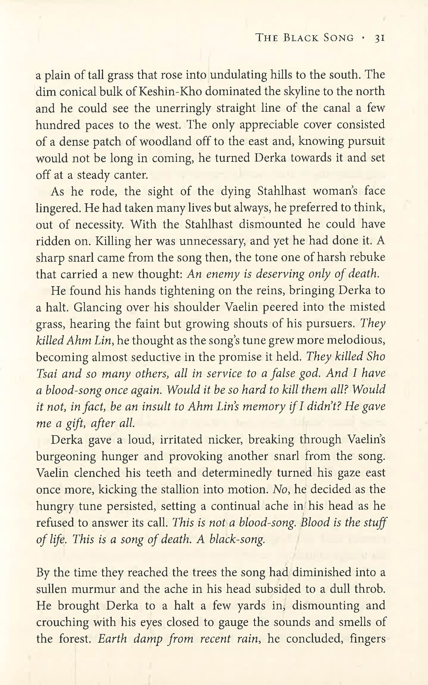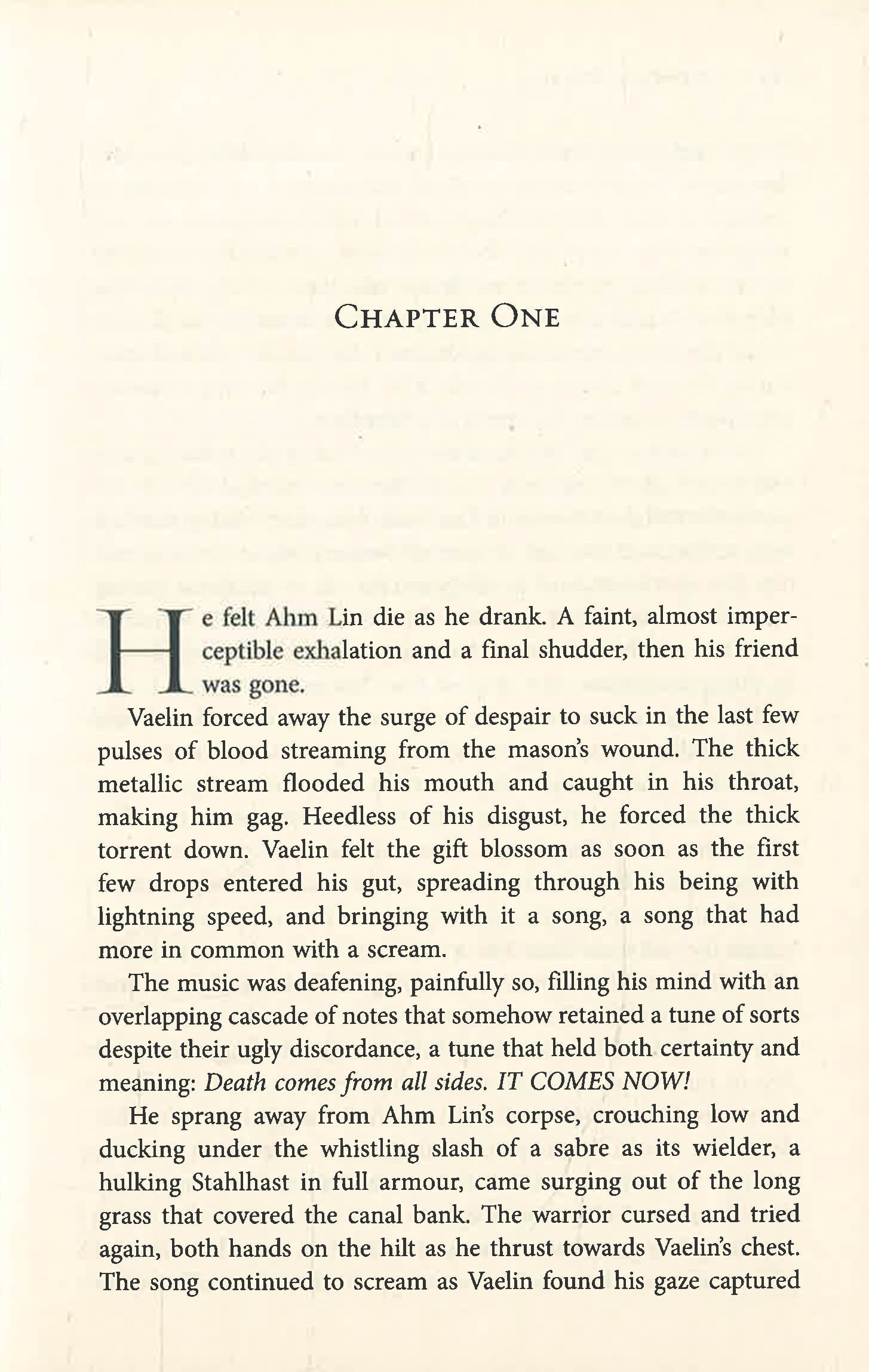 Yet Vaelin is on the run, his own army in disarray. Worse, the new blood song he has acquired is as much a curse as a blessing, and seeks to guide him down a path far darker than he could have imagined . . .