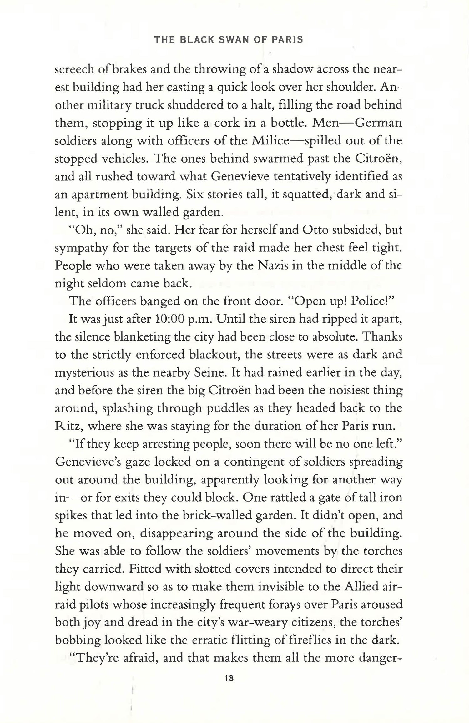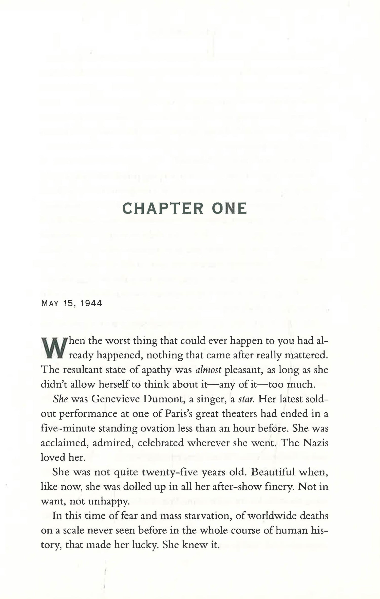 Celebrated singer Genevieve Dumont is both a star and a smoke screen. An unwilling darling to the Nazis, the chanteuse’s position of privilege allows her to go undetected as an ally to the resistance.