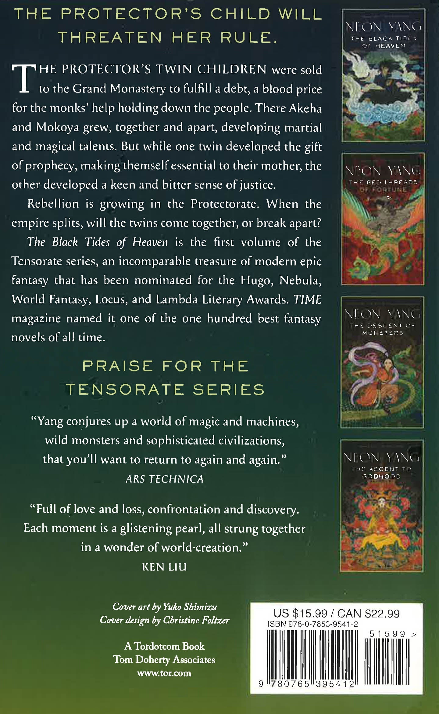 The Black Tides of Heaven is one of a pair of unique, standalone introductions to Neon Yang's Tensorate Series, which Kate Elliott calls "effortlessly fascinating." For more of the story you can read its twin novella The Red Threads of Fortune, available simultaneously.