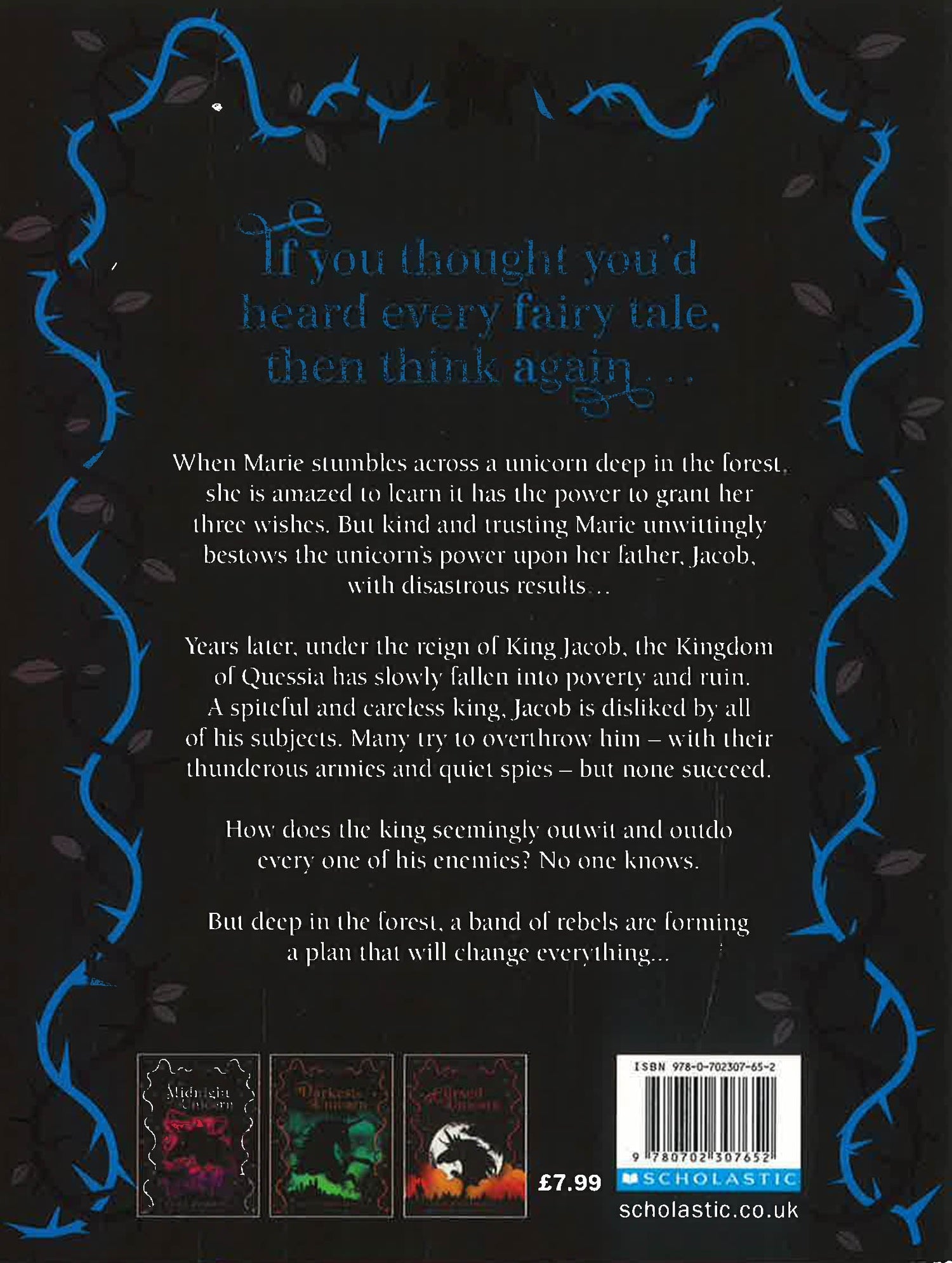 From Alice Hemming, the bestselling author of The Midnight Unicorn, comes a brand-new unicorn fairytale. An evil king, a fearsome warrior, a fight for freedom. If you were granted three wishes, what would you wish for? For Marie, that dream becomes a reality when she stumbles across a magical unicorn deep in the forest. But when Marie - who is so kind and trusting in nature - decides to tell her father Jacob about the wishes bestowed upon her, he tricks her into giving the wishes to him. Driven by greed, he enslaves the unicorn by demanding for never-ending wishes. Unable to say no, the unicorn submits... Years later, the Kingdom of Quessia has slowly fallen into poverty and ruin under the rein of King Jacob. A spiteful and careless king, Jacob is disliked by all of his subjects, but little does he know that a revolution threatening his throne and his life is not too far in his future... Will King Jacob keep the Blazing Unicorn enslaved forever and retain his throne? Will Marie ever be able to right the wrongs of her past? As exciting as it is gripping, this unicorn fairy tale from Alice Hemming will be your next favourite read. Enchanting dark fairy tales with magical unicorns, fearsome villains and inspiring heroines Perfect for fans of SKANDAR AND THE UNICORN THIEF Great for people who love fairy tales, Disney and unicorns DARK UNICORNS - COLLECT THEM ALL! The Midnight Unicorn Paperback eBook The Darkest Unicorn Paperback eBook The Cursed Unicorn Paperback eBook The Blazing Unicorn Paperback eBook Coming Soon: The Frozen Unicorn Paperback eBook