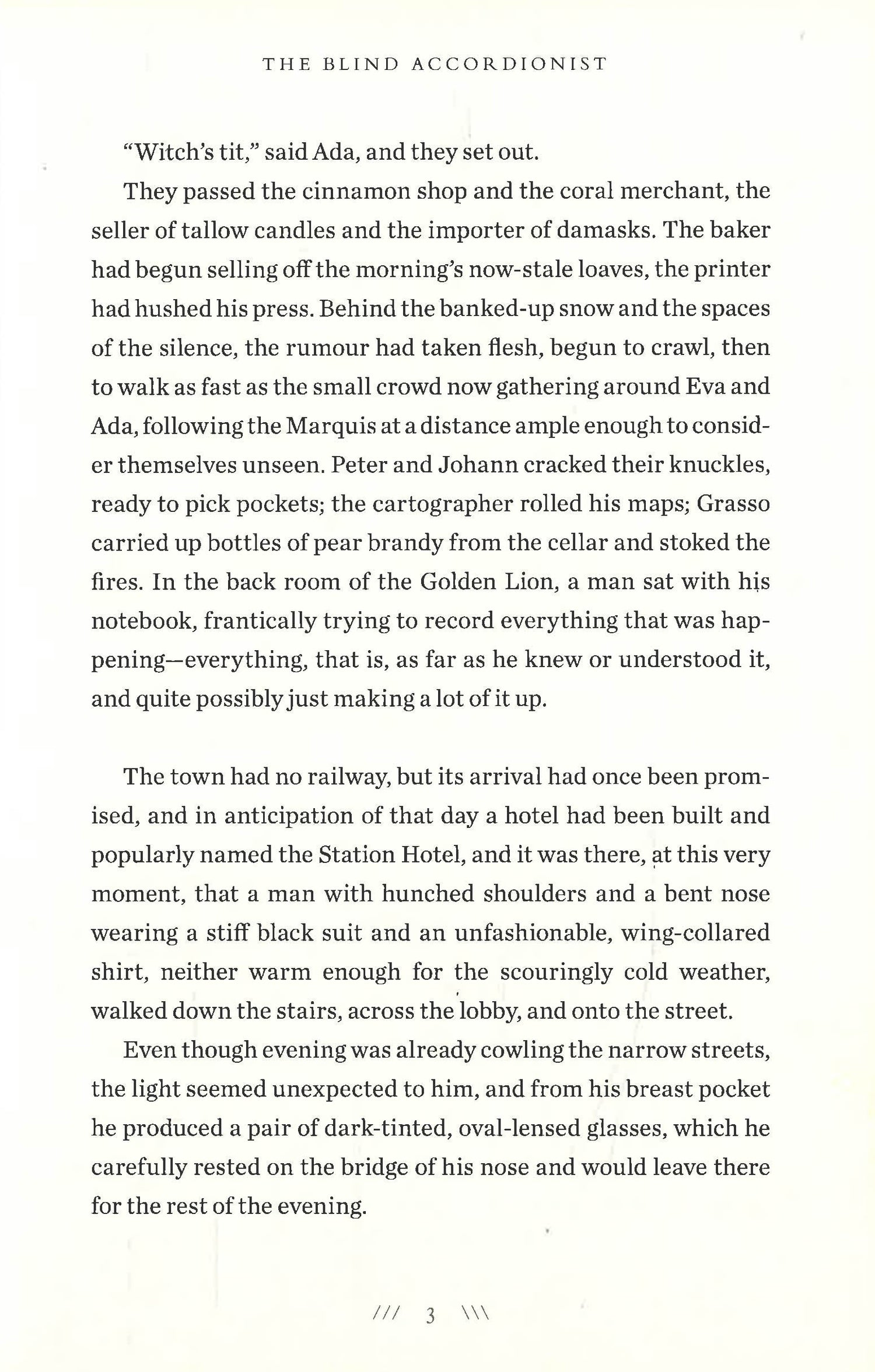 Like those books, THE BLIND ACCORDIONIST can be read both as a simple but wonderful collection of quirky stories, and as comedy--or as a beautiful and moving elegy on the nobility of writers wanting to be read.