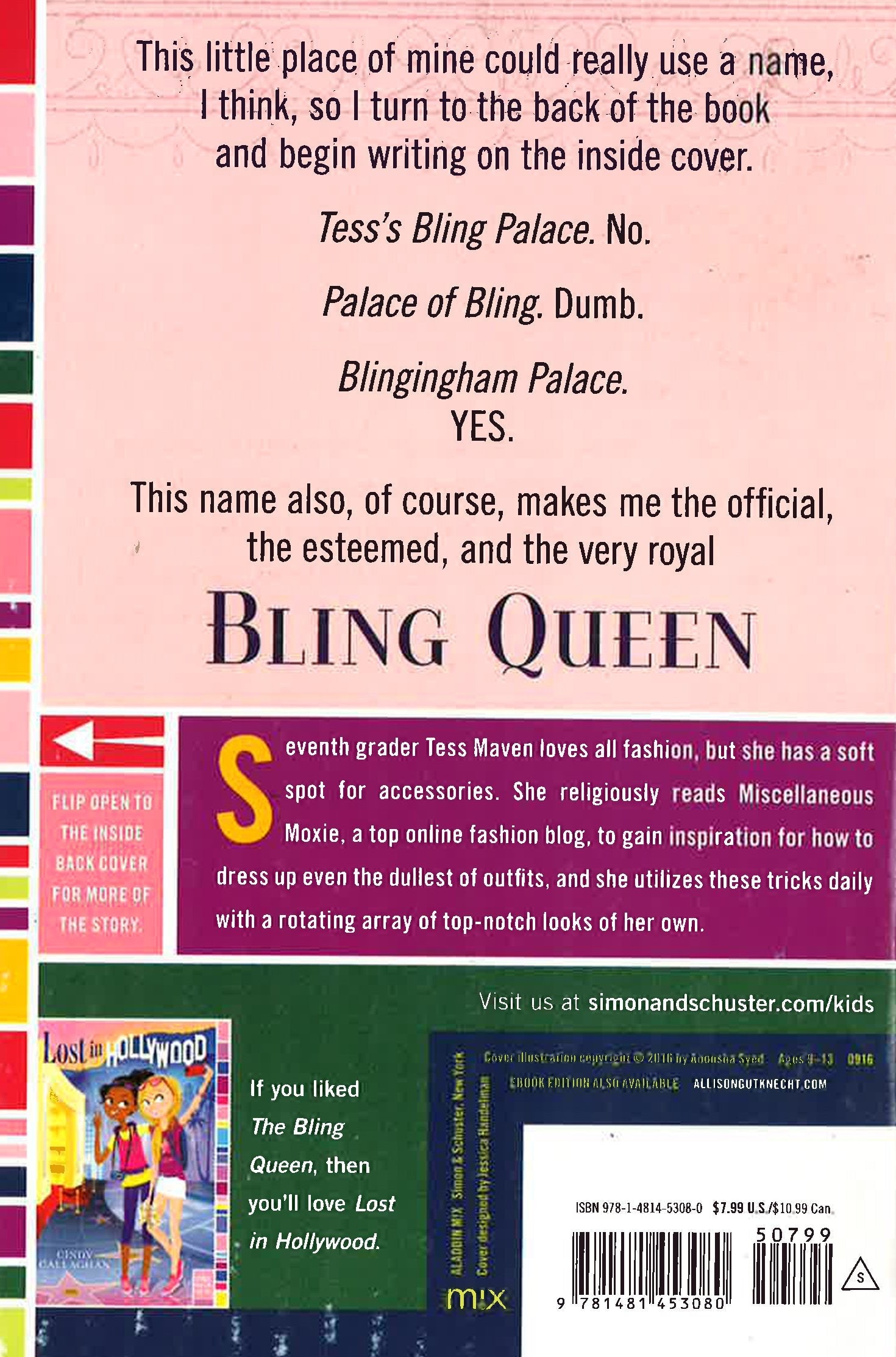 A tween jewelry designer finds herself competing for an online fashion blog spot in this funny and sparkly M!X novel. Twelve-year-old Tess loves fashion, but she has a soft spot for accessories. In fact, Tess runs her own consulting firm for the kids at her school. If you need the finishing touch for middle school dances, special occasions like a thirteenth birthday or bat/bar mitzvah, Tess can make it happen. She loves reading The Miscellaneous Moxie, THE online fashion blog that's as crazy about accessories as Tess is. So when the blog opens up a contest, calling all of their faithful readers to enter to win a chance at designing an accessory of their very own, Tess jumps at the chance to create something that will wow the judges. But things get more complicated when her former BFF turned frenemy, Kayte (who added the y to be "unique"), a self-proclaimed fashion plate, tries to encroach on Tess's turf--and submits her own entries for the blog contest. In the midst of the Bling War, Tess discovers that a precious locket from her beloved grandmother, Mimi, is missing. Can Tess solve the mystery behind the missing necklace and get crowned the Bling Queen, too? *This book may have remainder mark*