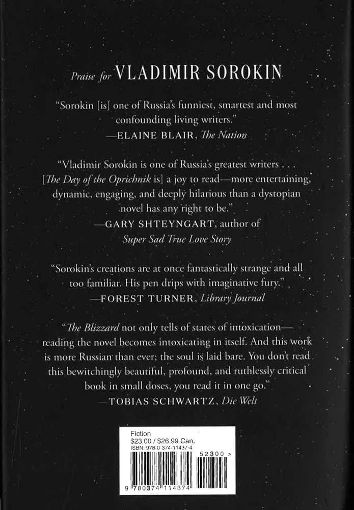 Vladimir Sorokin is one of Russia's most popular and provocative novelists. In his scabrous dystopian satire Day of the Oprichnik, American readers were introduced to his distinctive style, which combines an edgy avant-garde sensibility with a fondness for the absurd and even the grotesque all in service of bringing out stinging truths about life in modern-day Russia. In The Blizzard, we are immersed in the atmosphere of a nineteenth-century Russia. Garin, a district doctor, is desperately trying to reach the village of Dolgoye, where a mysterious epidemic is turning people into zombies. He carries with him a vaccine that will prevent the spread of this terrible disease but is stymied in his travels by an all consuming snowstorm, an impenetrable blizzard that turns a drive that should last only a few hours into a voyage of days and, finally, a journey into eternity. The Blizzard dramatises a timeless metaphysical predicament.