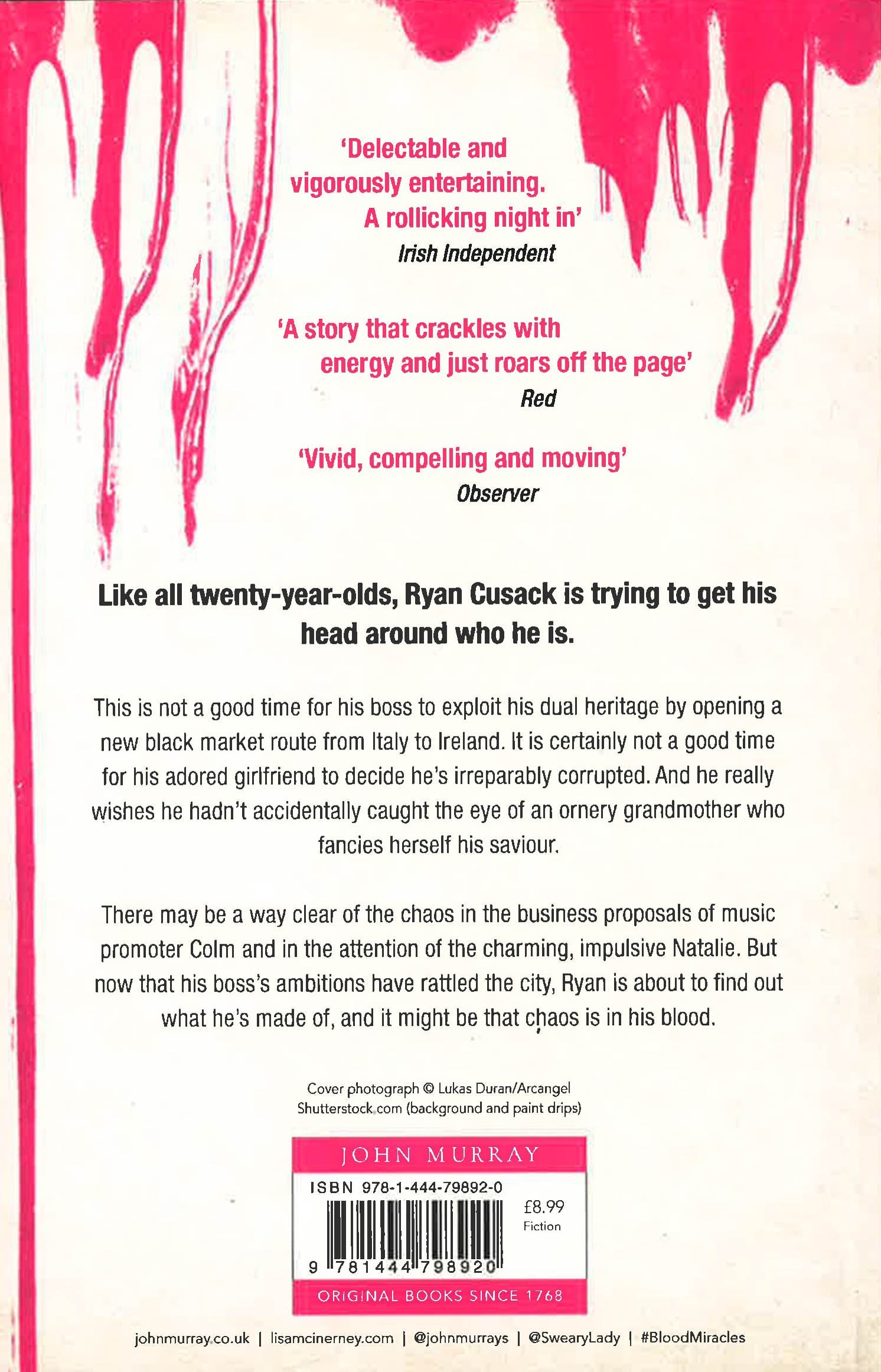 The second novel from the author of the Baileys Prize-winning The Glorious Heresies The second novel from the author of the Baileys Prize-winning The Glorious Heresies'Fast paced, compelling, and thrilling, Lisa McInerney writes the type of fiction that is both beautifully crafted and immensely enjoyable' Louise O'Neill'The Blood Miracles has all the brio, street smarts and vicious linguistic verve of The Glorious Heresies, but with this follow up Lisa McInerney also reminds us just how brilliantly accomplished and ruthlessly focused a storyteller she is' Colin BarrettLike all twenty-year-olds, Ryan Cusack is trying to get his head around who he is. This is not a good time for his boss to exploit his dual heritage by opening a new black market route from Italy to Ireland. It is certainly not a good time for his adored girlfriend to decide he's irreparably corrupted. And he really wishes he hadn't accidentally caught the eye of an ornery grandmother who fancies herself his saviour. There may be a way clear of the chaos in the business proposals of music promoter Colm and in the attention of the charming, impulsive Natalie. But now that his boss's ambitions have rattled the city, Ryan is about to find out what he's made of, and it might be that chaos is in his blood.