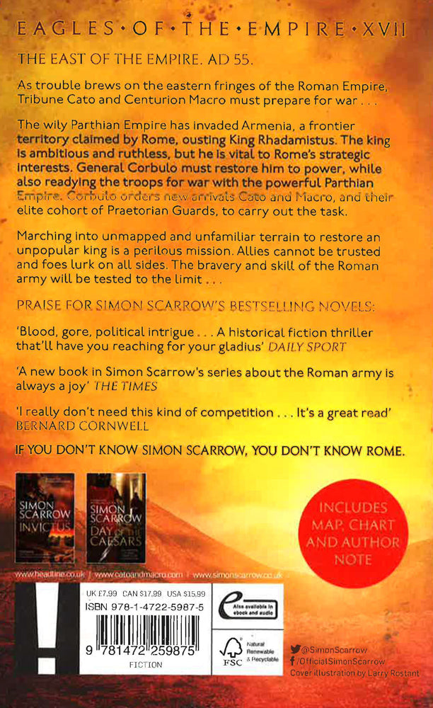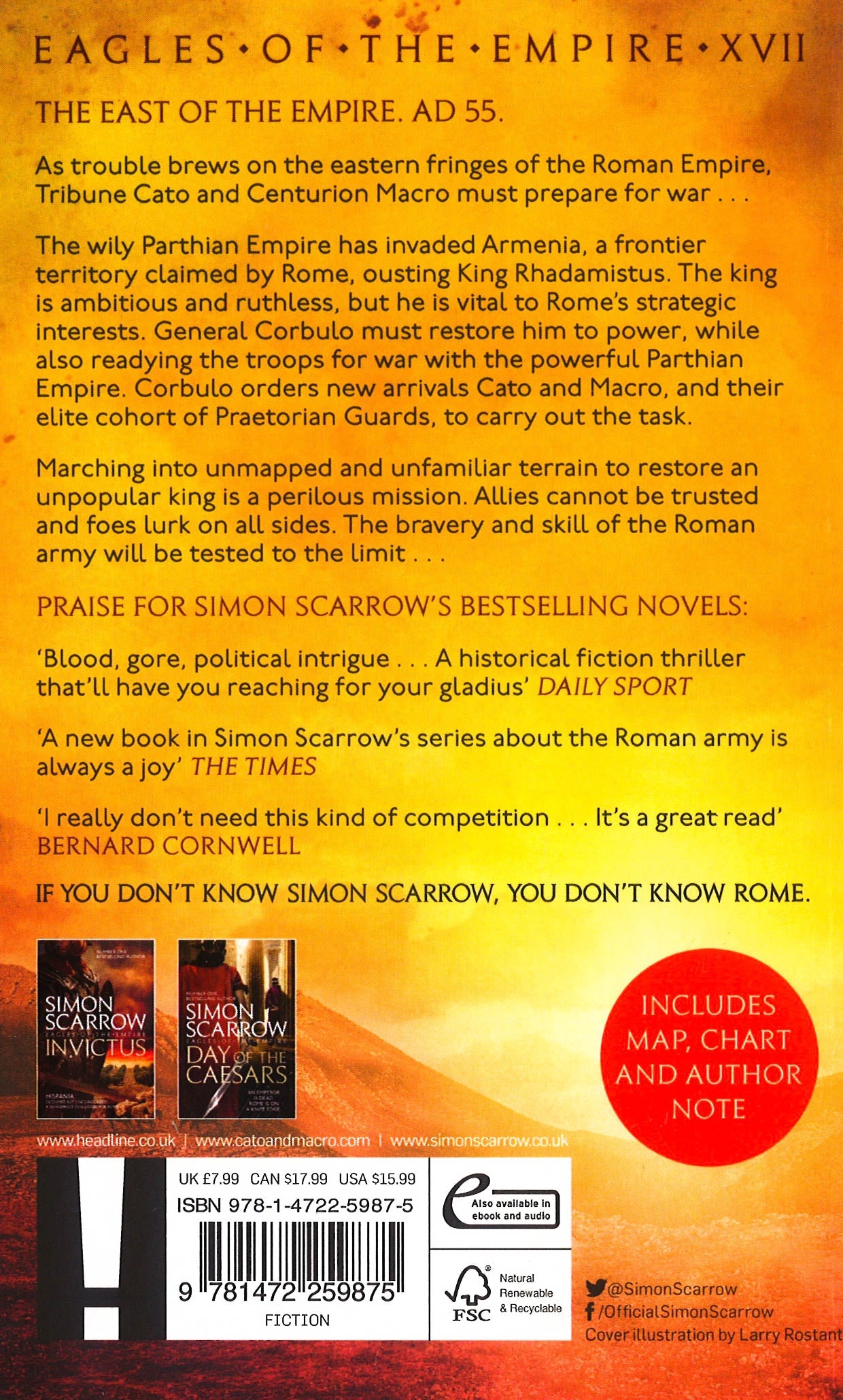 The gripping new Cato and Macro adventure in Simon Scarrow's bestselling Eagles of the Empire series, not to be missed by readers of Conn Iggulden and Bernard Cornwell.It is AD 55. As trouble brews on the eastern fringes of the Roman Empire, Prefect Cato and Centurion Macro must prepare for war...The wily Parthian Empire has invaded Roman-ruled Armenia, ousting King Rhadamistus. The King is ambitious and ruthless, but he is loyal to Rome. General Corbulo must restore him to power, while also readying the troops for war with the powerful Parthian Empire. Corbulo welcomes new arrivals Cato and Macro, experienced soldiers who know how to knock into shape an undermanned unit of men ill-equipped for conflict.It's a dangerous game to restore a deposed king. Rhadamistus's brutality towards those who ousted him is the spark for an uprising which will test the bravery and skill of the Roman army the limit. While a sinister enemy watches from over the border...Praise for Scarrow's bestselling novels: 'Blood, gore, political intrigue...A historical fiction thriller that'll have you reaching for your gladius' Daily Sport