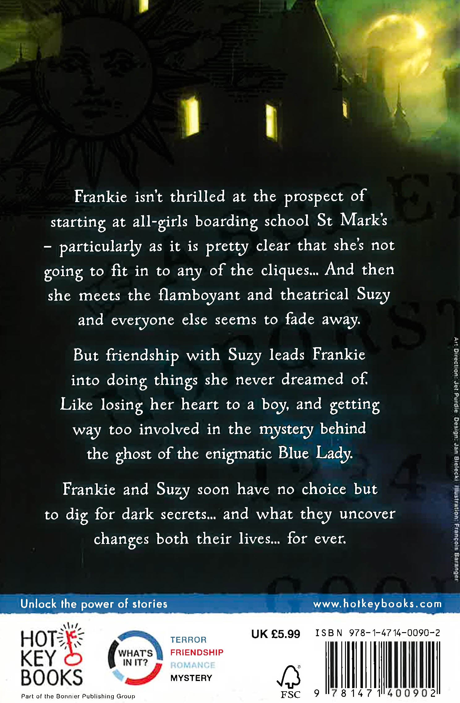 Fourteen-year-old Frankie Ward is used to being the new girl at school, but even she is unprepared for life at St Mark's College. Finding herself isolated from the rest of the girls, Frankie is drawn to flamboyant and dramatic Suzy, who captivates her with stories of 'The Blue Lady' - the ghost of an ex-St Mark's pupil who died in mysterious and tragic circumstances. One night Suzy persuades Frankie to help her contact The Blue Lady via an Ouija Board - and the girls unleash a terrifying spirit who seems set on destroying not only their friendship but Suzy's sanity. Determined to rescue her friend, Frankie enlists the help of Seb, a mysterious and alluring boy from sister-school St Hilda's. Seb is as interested in St Mark's past as Frankie - but does he have as many dark secrets as the school?