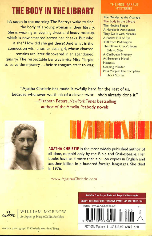 It's seven in the morning. The Bantrys wake to find the body of a young woman in their library. She is wearing an evening dress and heavy makeup, which is now smeared across her cheeks. But who is she? How did she get there? And what is the connection with another dead girl, whose charred remains are later discovered in an abandoned quarry? The respectable Bantrys invite Miss Marple to solve the mystery . . . before tongues start to wag.