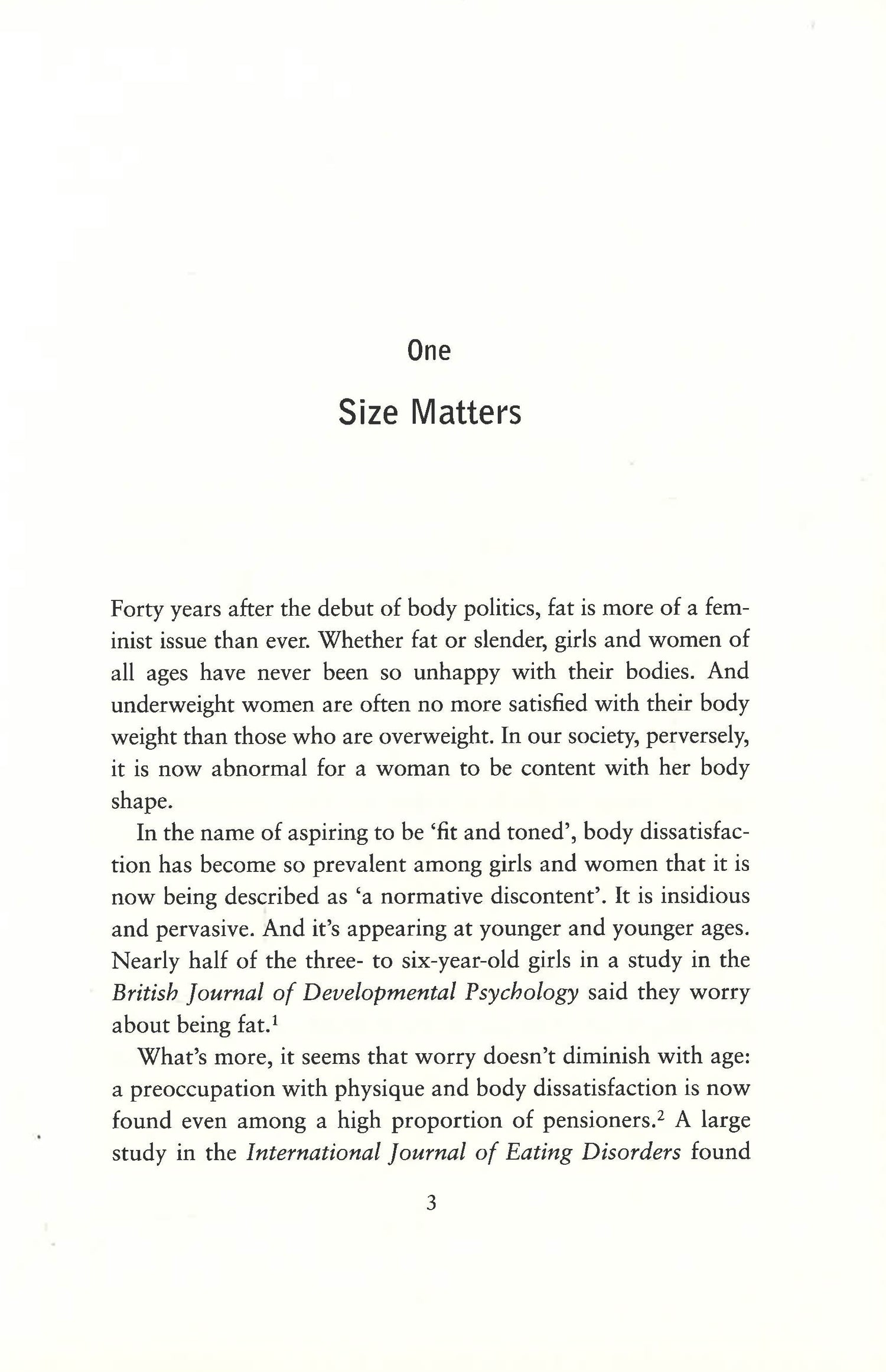 Girls and women of all ages have never been more unhappy with their bodies. And research shows that slim women are often no more satisfied with their bodies than overweight ones. Forty years after the debut of body politics, fat is more of a feminist issue than ever.