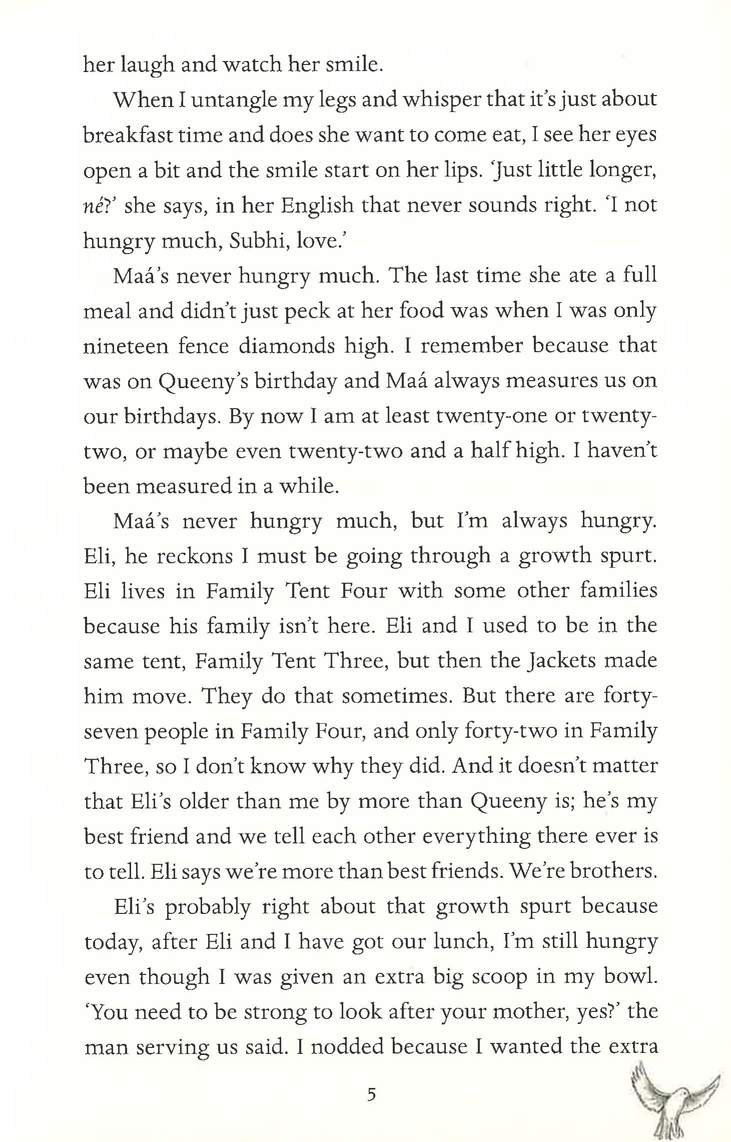 Shortlisted for the Guardian Children's Fiction prize and nominated for the CILIP Carnegie Medal 2017. Perfect for fans of The Boy in the Striped Pyjamas. This is a beautiful, vivid and deeply moving story about a refugee boy who has spent his entire life living in a detention centre. This novel reminds us all of the importance of freedom, hope, and the power of a story to speak for anyone who's ever struggled to find a safe home. '...a special book' - Morris Gleitzman, author of the acclaimed ONCE series Born in a refugee camp, all Subhi knows of the world is that he's at least 19 fence diamonds high, the nice Jackets never stay long, and at night he dreams that the sea finds its way to his tent, bringing with it unusual treasures. And one day it brings him Jimmie. Carrying a notebook that she's unable to read and wearing a sparrow made out of bone around her neck - both talismans of her family's past and the mother she's lost - Jimmie strikes up an unlikely friendship with Subhi beyond the fence. As he reads aloud the tale of how Jimmie's family came to be, both children discover the importance of their own stories in writing their futures.