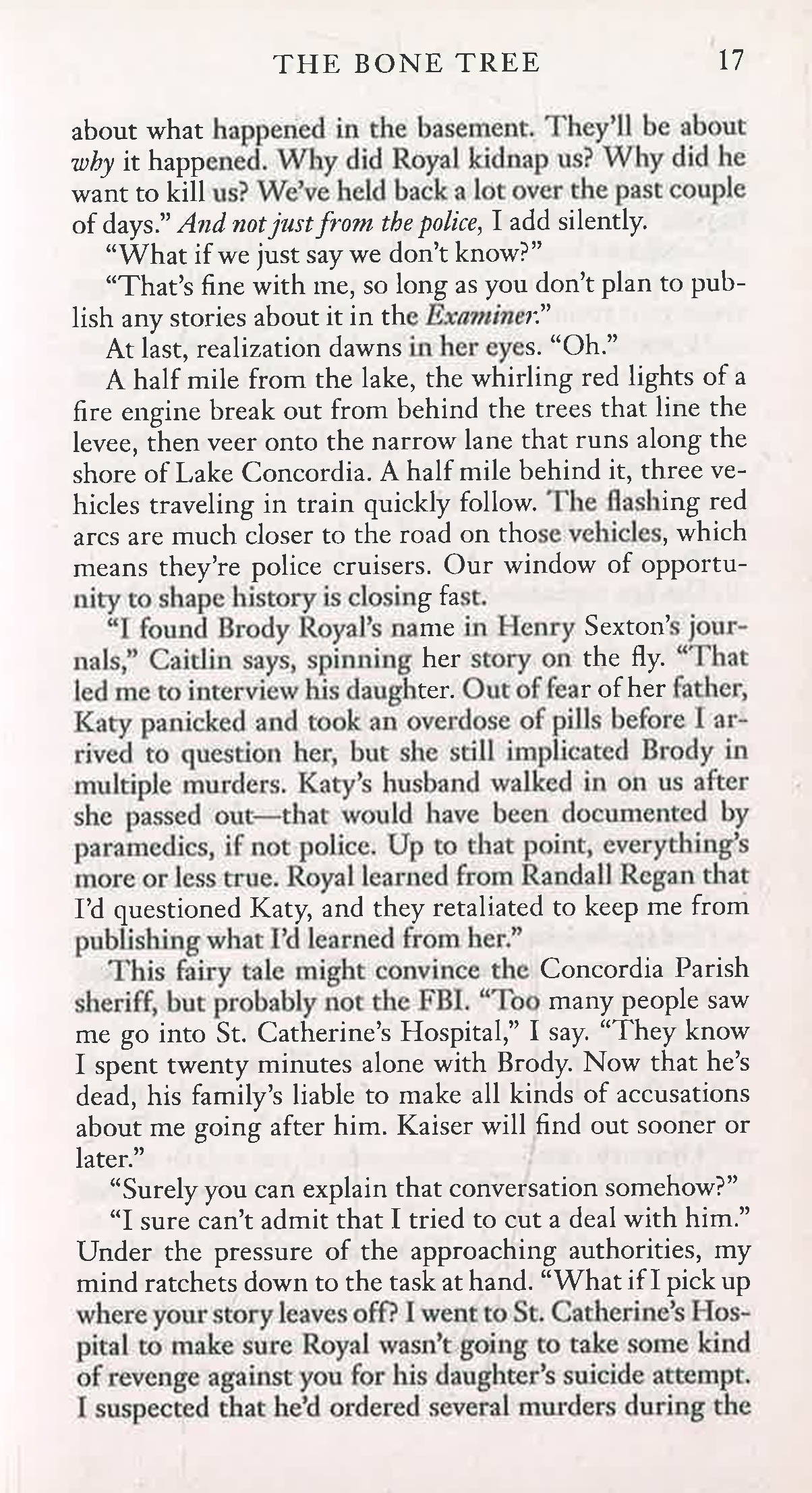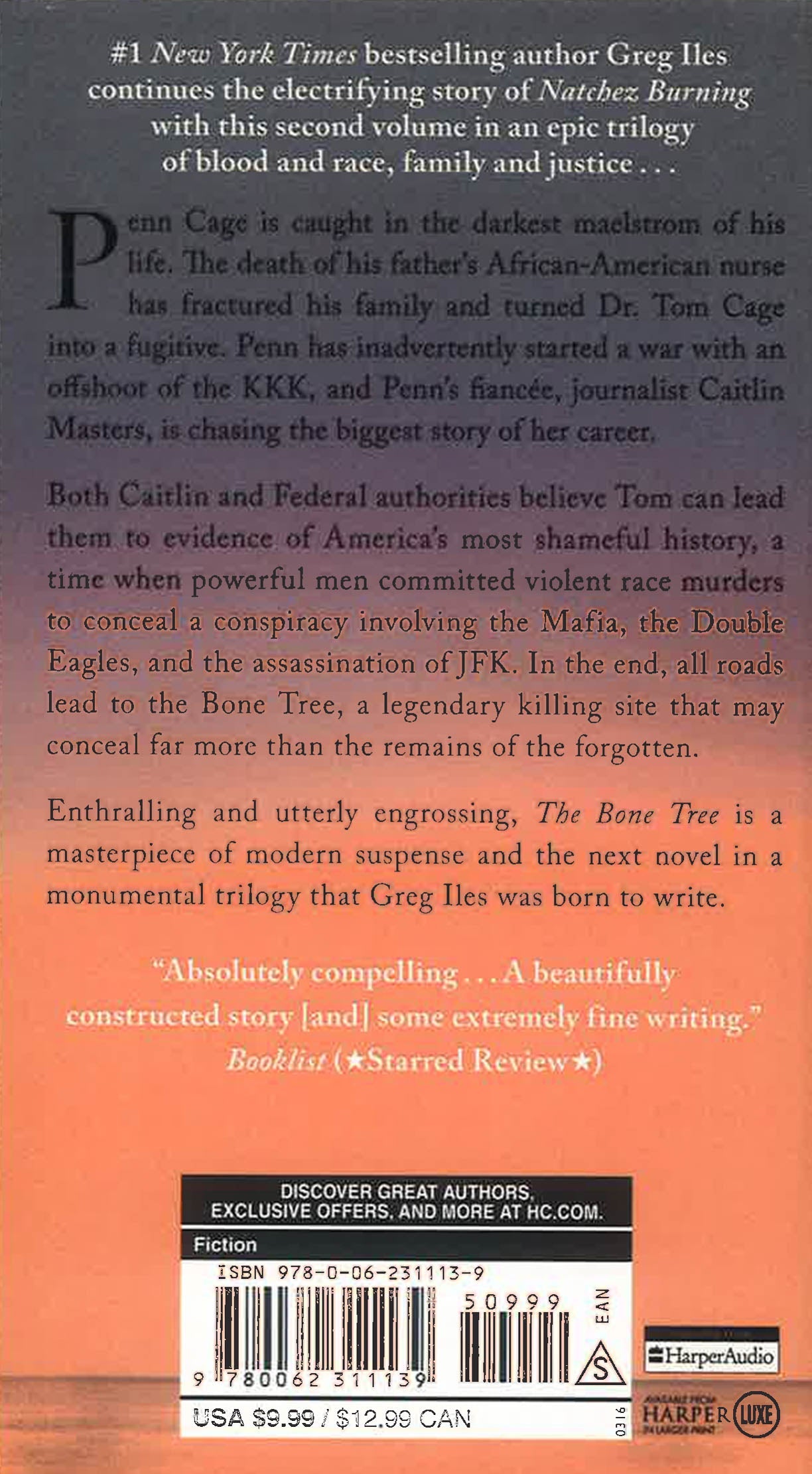 The only way Penn can save his father, Dr. Tom Cage—who is fleeing a murder charge as well as corrupt cops bent on killing him—is either to make a devil’s bargain with Knox or destroy him. While Penn desperately pursues both options, Caitlin uncovers the real story behind a series of unsolved civil rights murders that may hold the key to the Double Eagles’ downfall. The trail leads her deep into the past, into the black backwaters of the Mississippi River, to a secret killing ground used by slave owners and the Klan for over two hundred years . . . a place of terrifying evil known only as “the bone tree.”