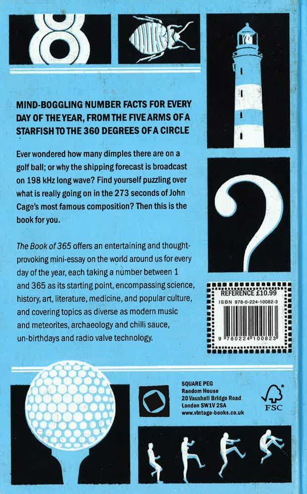 Ever wondered how many dimples there are on a golf ball; or why the shipping forecast is broadcast on 198 kHz long wave? Find yourself puzzling over what is really going on in the 273 seconds of John Cage's most famous composition? Then this book of mind-boggling number facts is for you. The Book of 365 offers an entertaining and thought-provoking mini-essay on the world around us for every day of the year, each taking a number between 1 and 365 as its starting point, encompassing science, history, art, literature, medicine, and popular culture, and covering topics as diverse as modern music and meteorites, archaeology and chilli sauce, un-birthdays and radio valve technology. On the way, uncover: at 5, the pentaradial symmetry of starfish and roses; at 34, how the US flag got its stars and stripes; at 99, the mysteries of the 99 ice-cream; at 239, where Sherlock Holmes really lived and, in honour of the leap year, at the end of the book there is a bonus 366th essay!