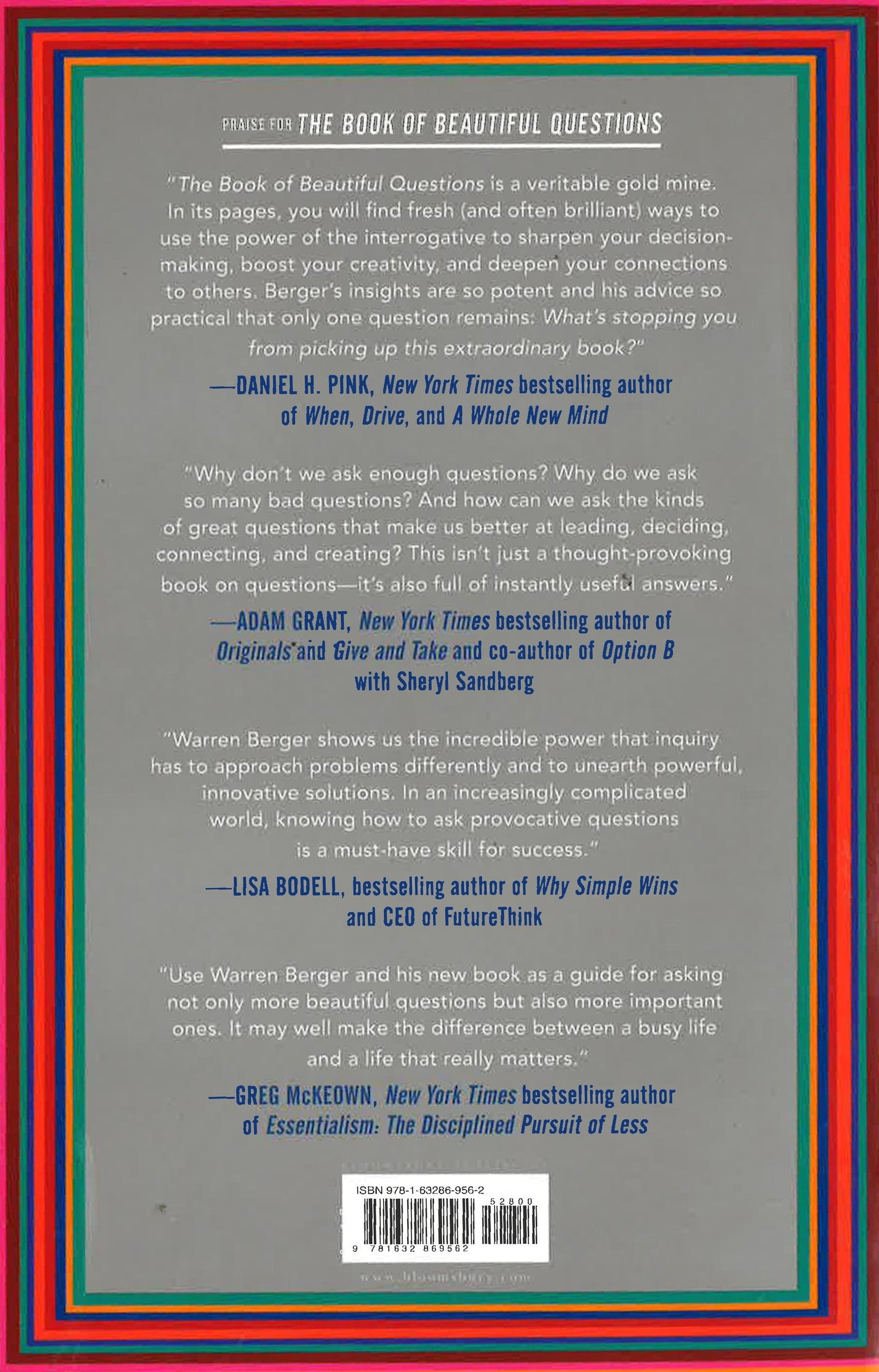 In The Book of Beautiful Questions, Berger shares illuminating stories and compelling research on the power of inquiry. Drawn from the insights and expertise of psychologists, innovators, effective leaders, and some of the world's foremost creative thinkers, he presents the essential questions readers need to make the best choices when it truly counts, with a particular focus in four key areas: decision-making, creativity, leadership, and relationships.